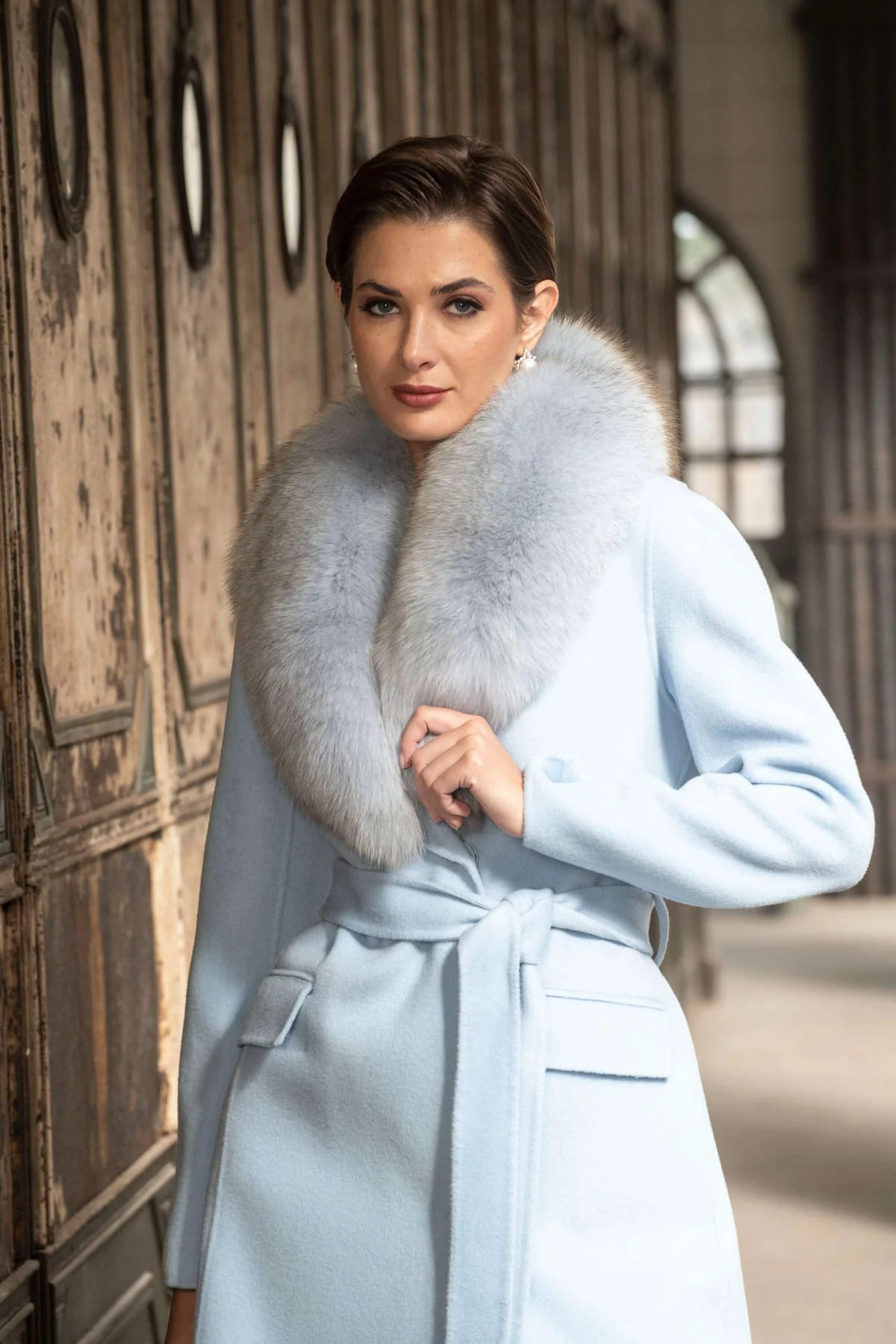 Abrigo Azul Bebé de Paño con Cuello de Piel de Zorroloco luxo
