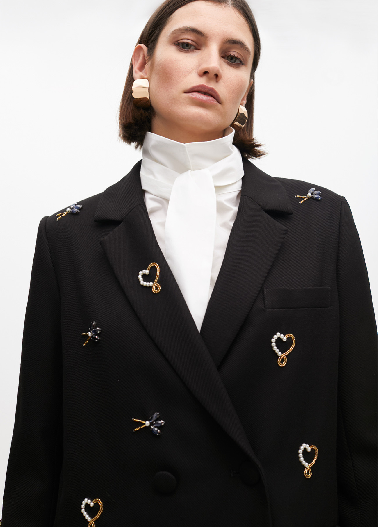 Americana cruzada con bordados y pedrería – Lola Casademunt