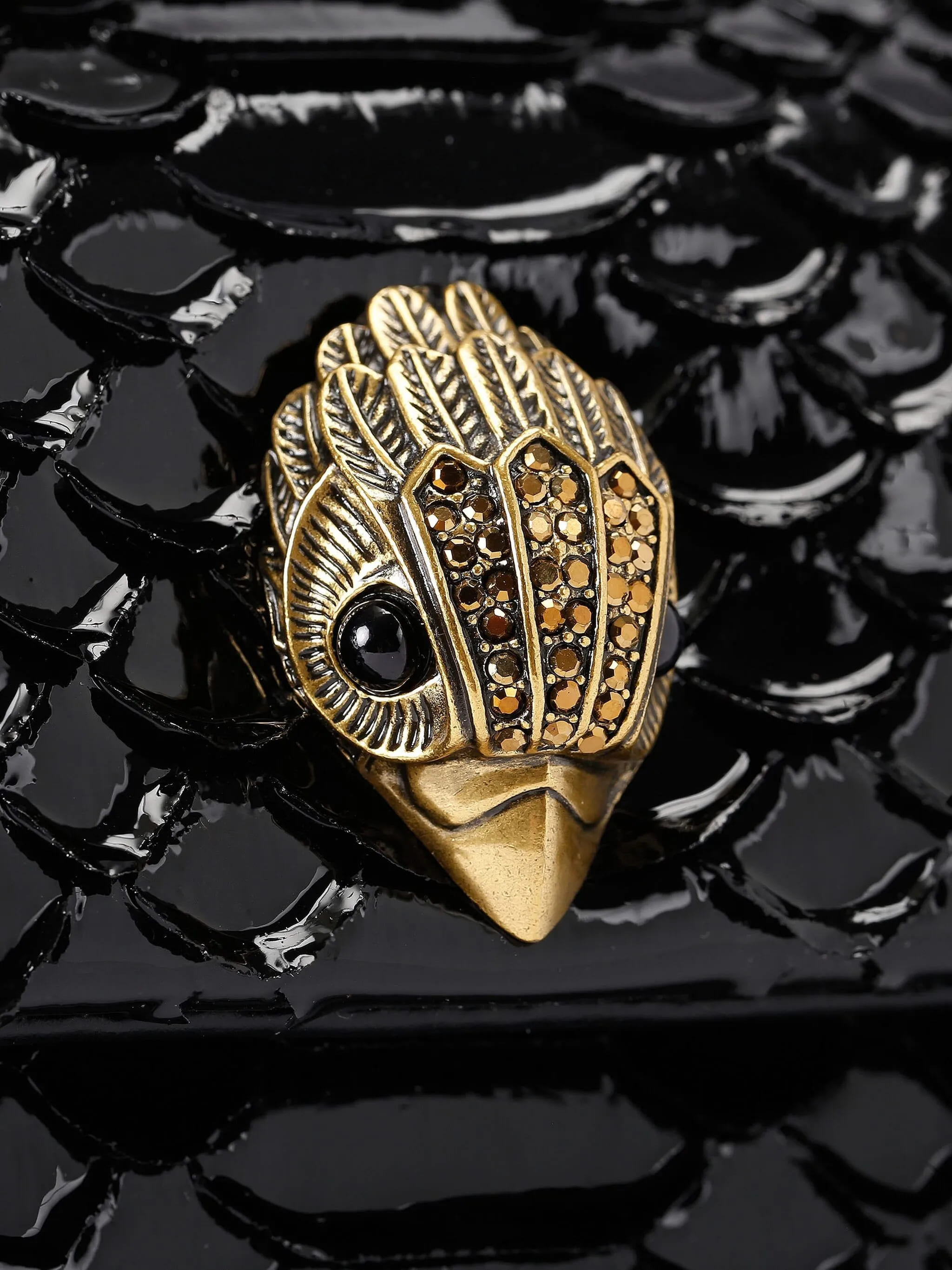 Su tamaño compacto y su correa de cadena metálica dorada lo convierten en el aliado perfecto para tus looks de día o de noche. Destaca el icónico cierre de solapa con cabeza de águila con cristales, símbolo inconfundible de la marca.