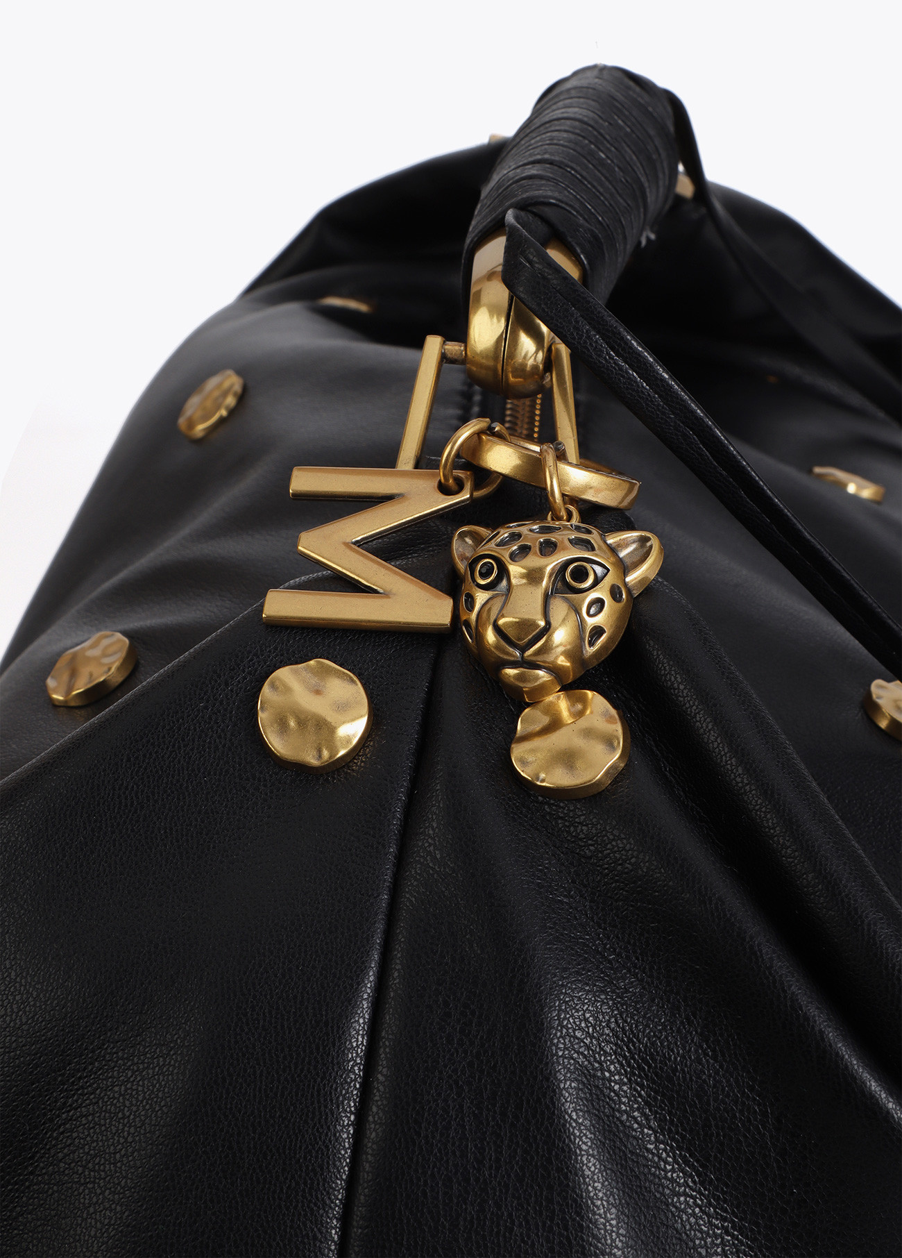 Disponible en color negro con detalle de tacha dorada.
