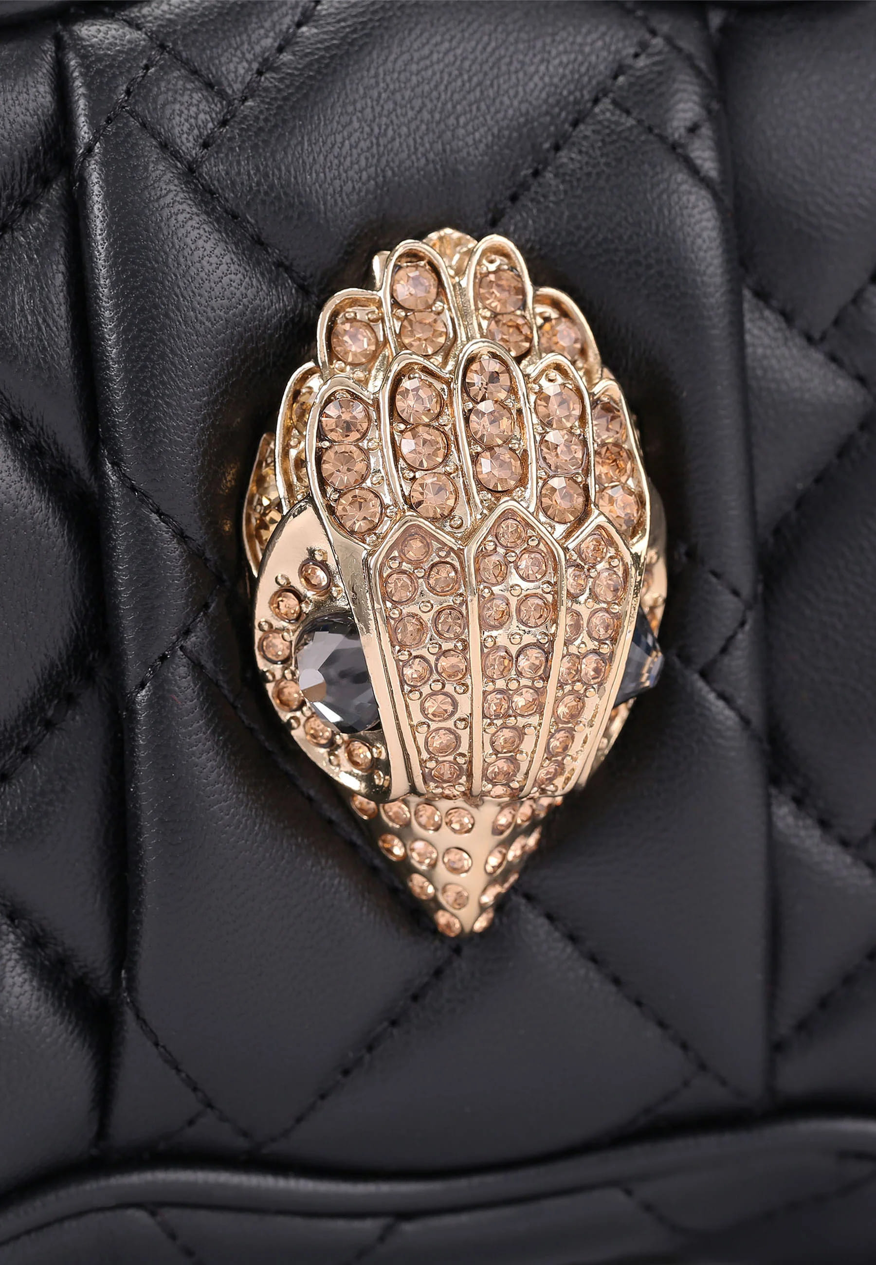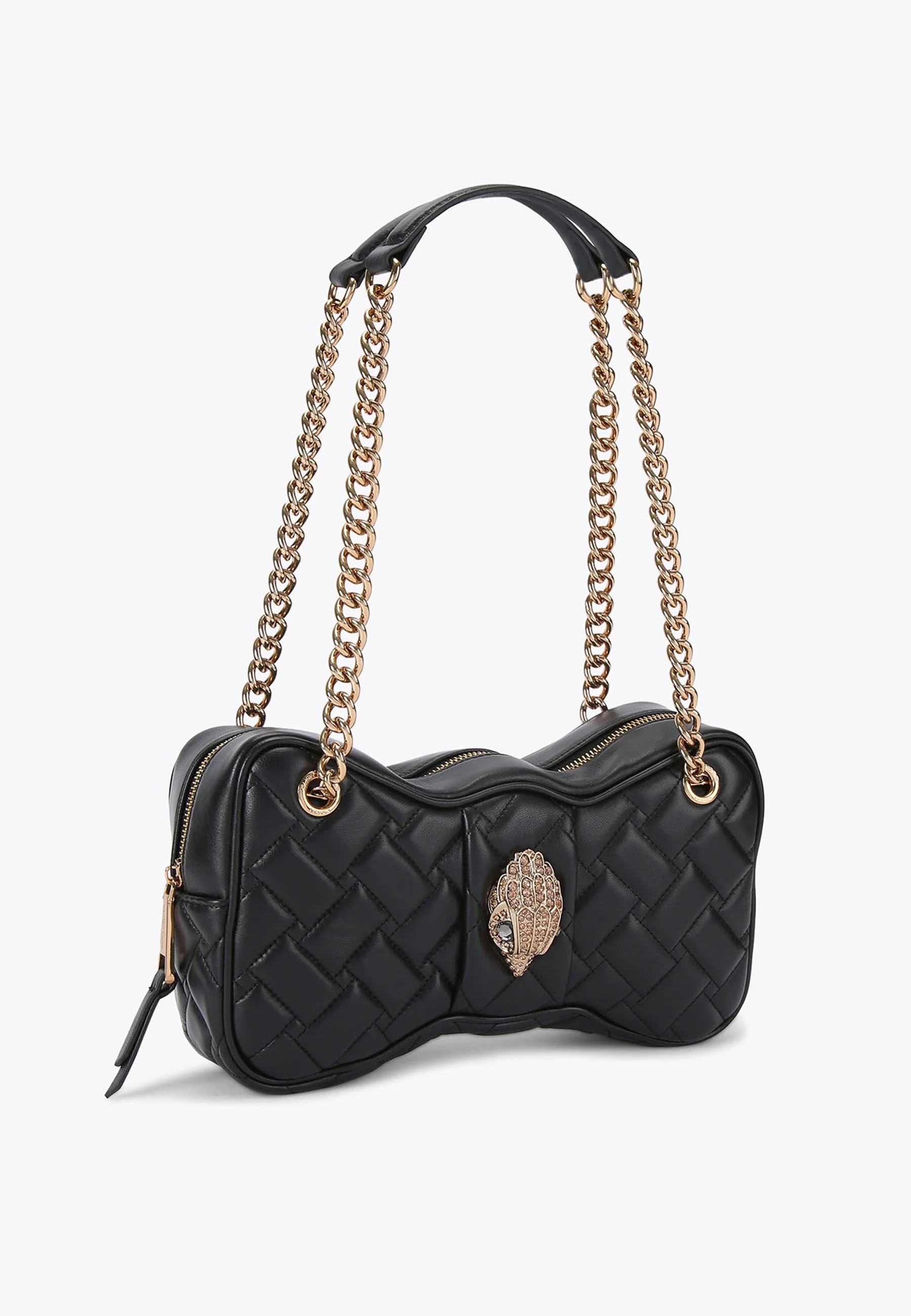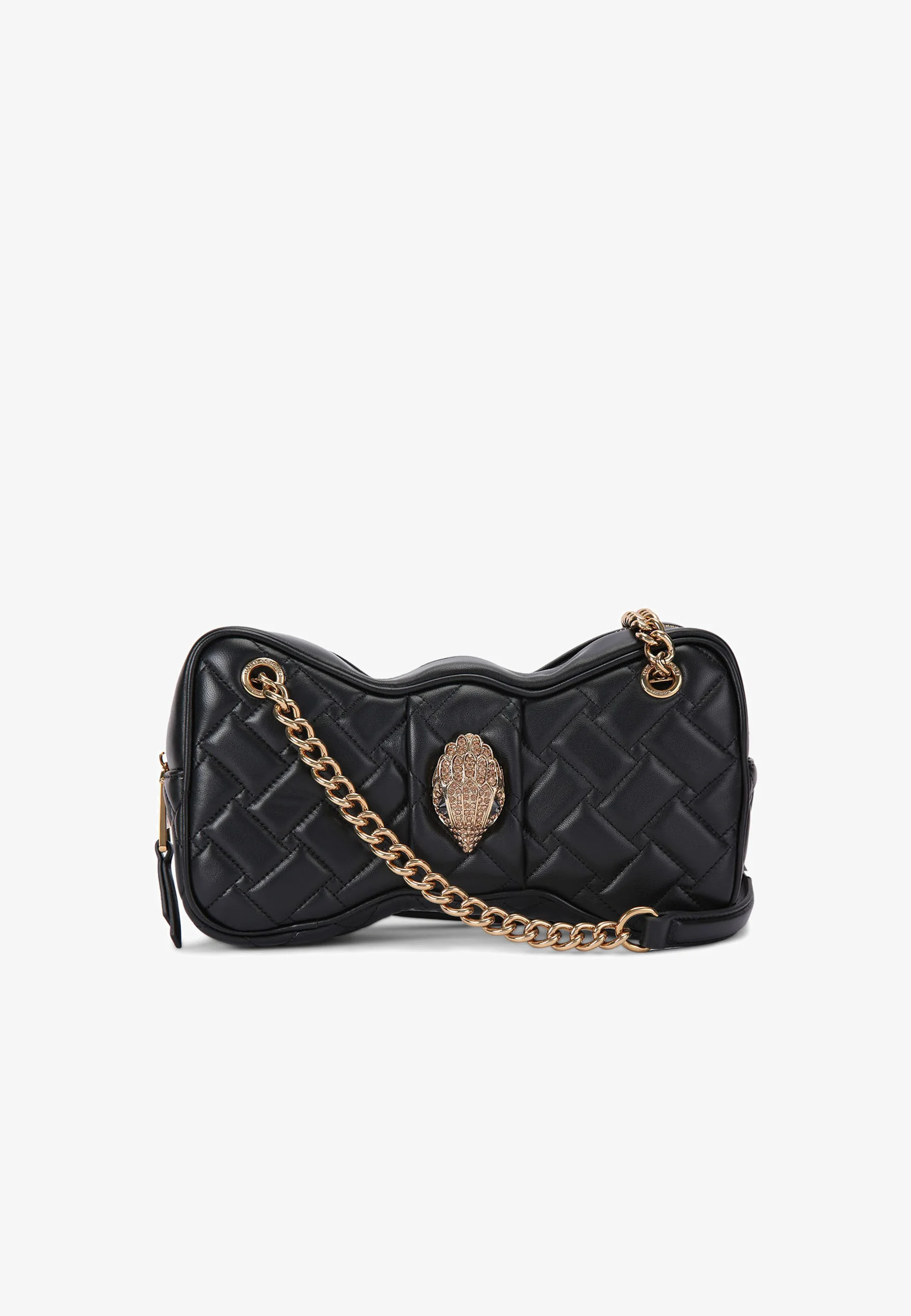 El cierre de cremallera superior protege el contenido, mientras que los detalles de pedrería en el exterior aportan brillo y personalidad.