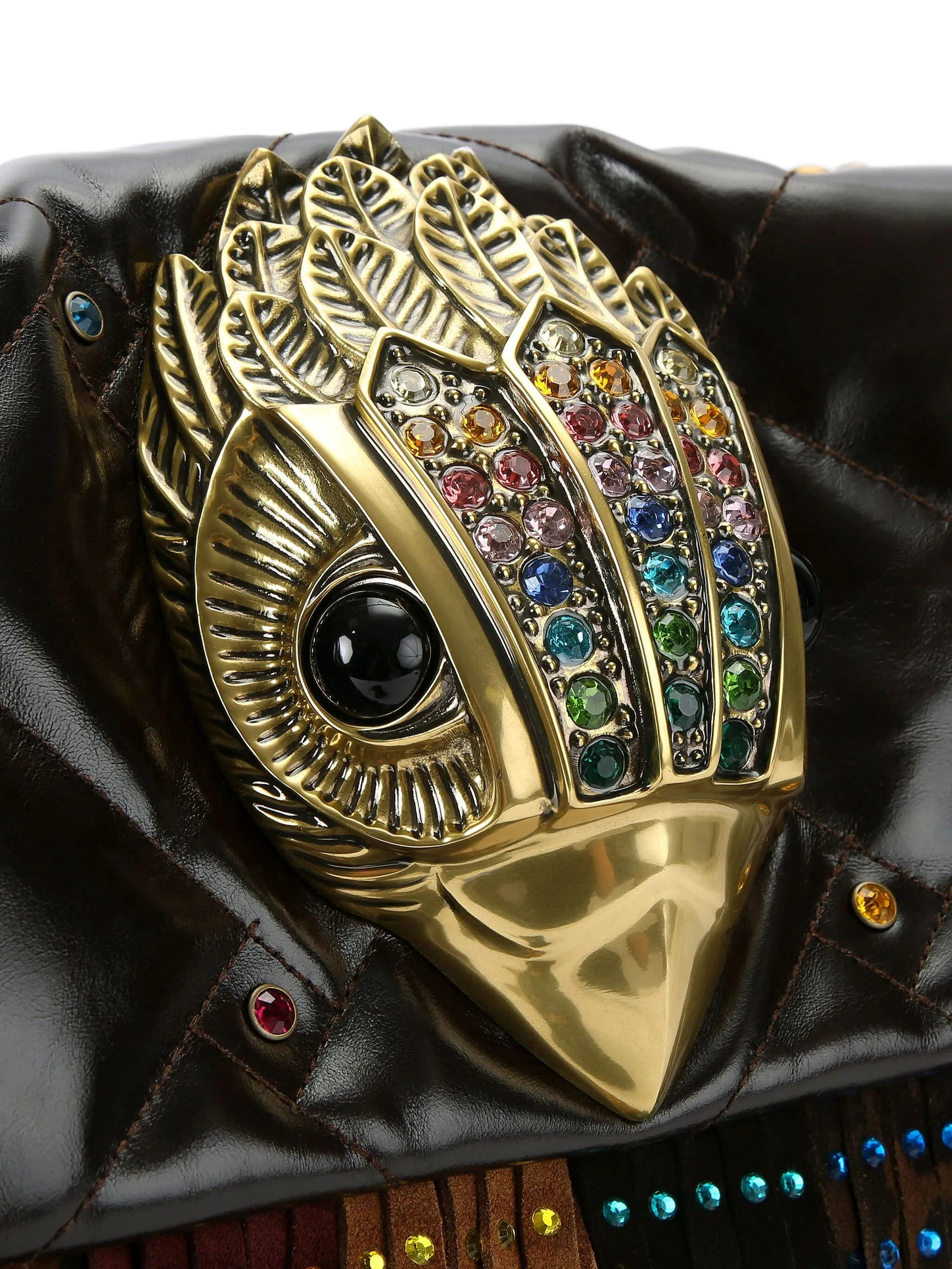 El cierre magnético oculto bajo la solapa lo mantiene seguro y elegante, mientras que la cabeza de águila XL con incrustaciones de cristal y acabado en latón envejecido añade carácter y distinción. Su correa de latón con inserciones acolchadas permite llevarlo tanto al hombro como cruzado con total comodidad.