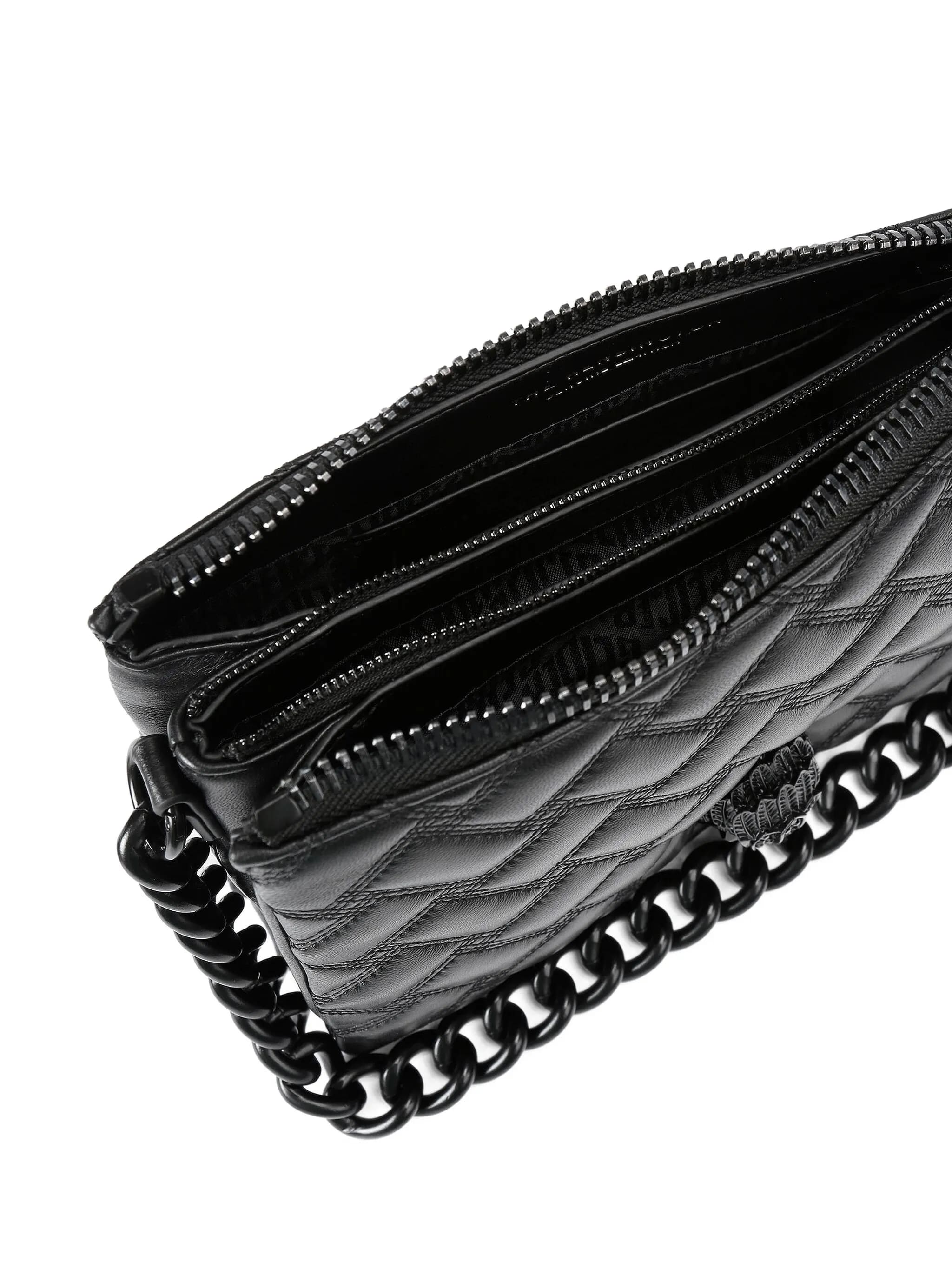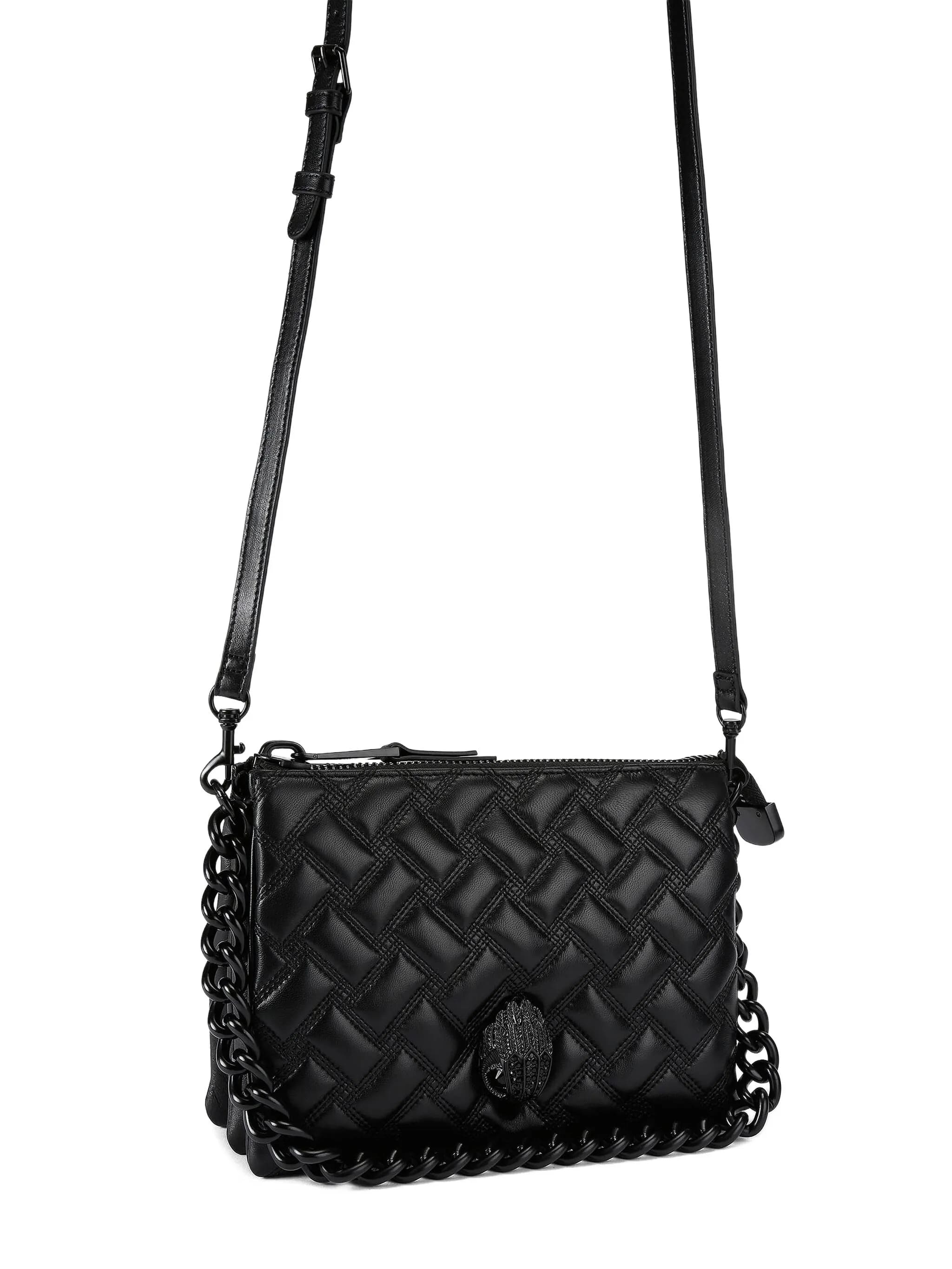 El bolso de hombro Kensington de Kurt Geiger London es una pieza atemporal que combina lujo discreto y funcionalidad. Confeccionado en 100% cuero negro, este accesorio destaca por su diseño estructurado y su correa de cadena metálica, ideal para llevar al hombro o cruzado. Cuenta con un cierre superior de cremallera, que mantiene tus objetos personales seguros, y un interior compacto perfecto para lo esencial del día o la noche. Su estética sofisticada lo convierte en un básico imprescindible en cualquier armario. Incluye una bolsa de protección, ideal para conservar la pieza en perfecto estado. Características principales: