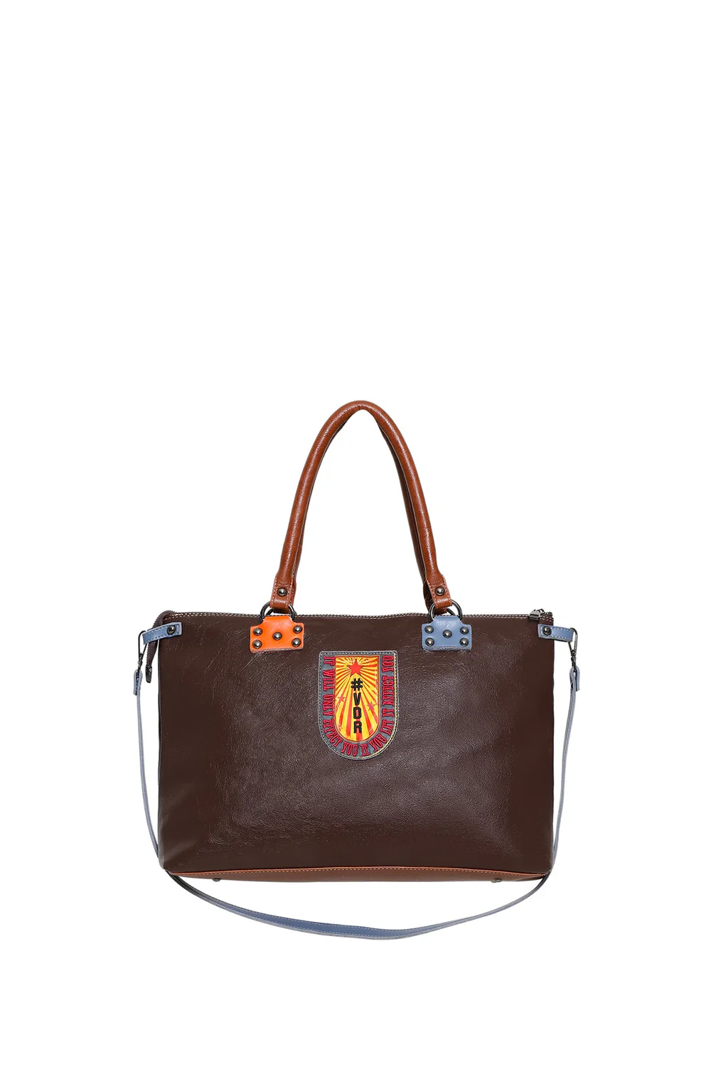 El bolso Woodstock de VDR combina funcionalidad y estilo con un diseño llamativo y original. Fabricado en piel sintética multicolor, destaca por su detalle de parche bordado en el frontal, que aporta identidad y carácter a la pieza.