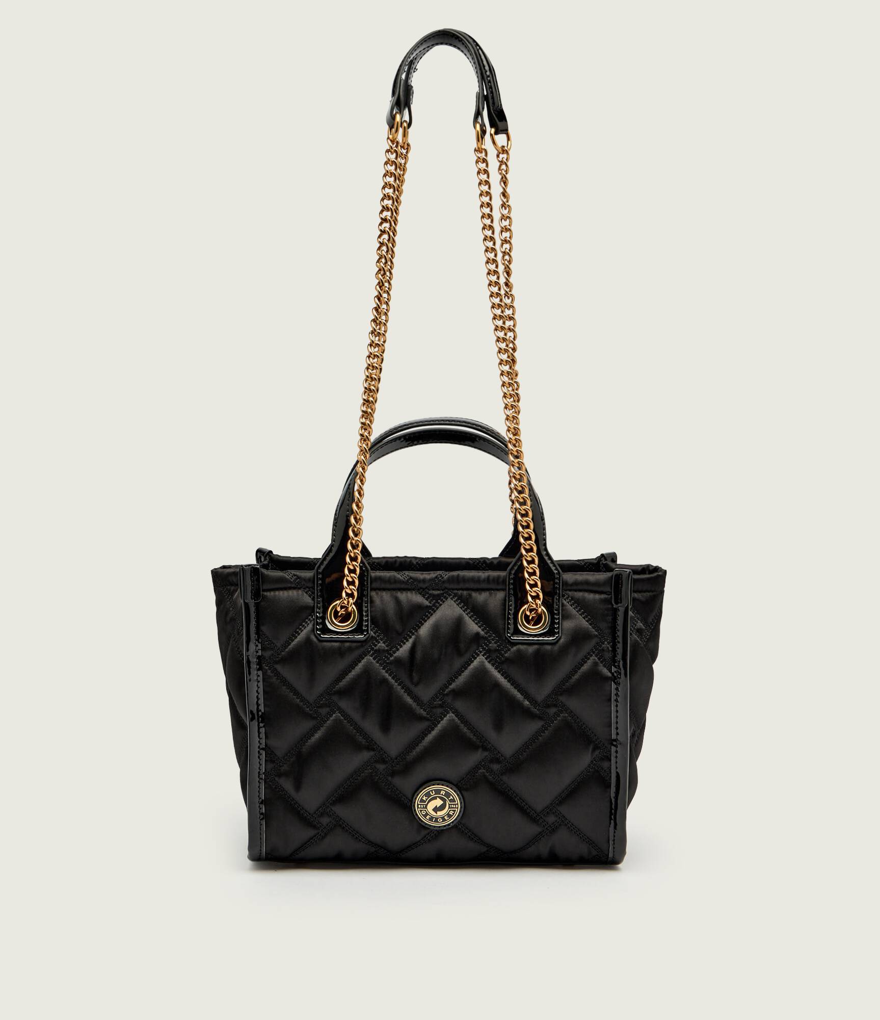 El bolso shopper Hoxton de Kurt Geiger London llega esta temporada como el complemento perfecto para elevar cualquier look. Confeccionado en poliéster acolchado negro, presenta un diseño de sobrehilado con un toque de lujo gracias a su aplique de cristal frontal y los detalles dorados. Incluye correa de cadena para llevar al hombro y dobles asas superiores para mayor versatilidad. Su amplio interior lo convierte en un bolso ideal para el día a día sin renunciar al estilo. ???? Detalles del producto: Color: negro Sobrehilado acolchado Aplique frontal de cristal Herrajes en tono dorado Correa larga de cadena + asas superiores Cierre superior con cremallera ???? Medidas: Altura: 20cm Ancho: 26cm Profundidad: 14 cm Largo de la correa: 94 cm Composición: 100% poliéster