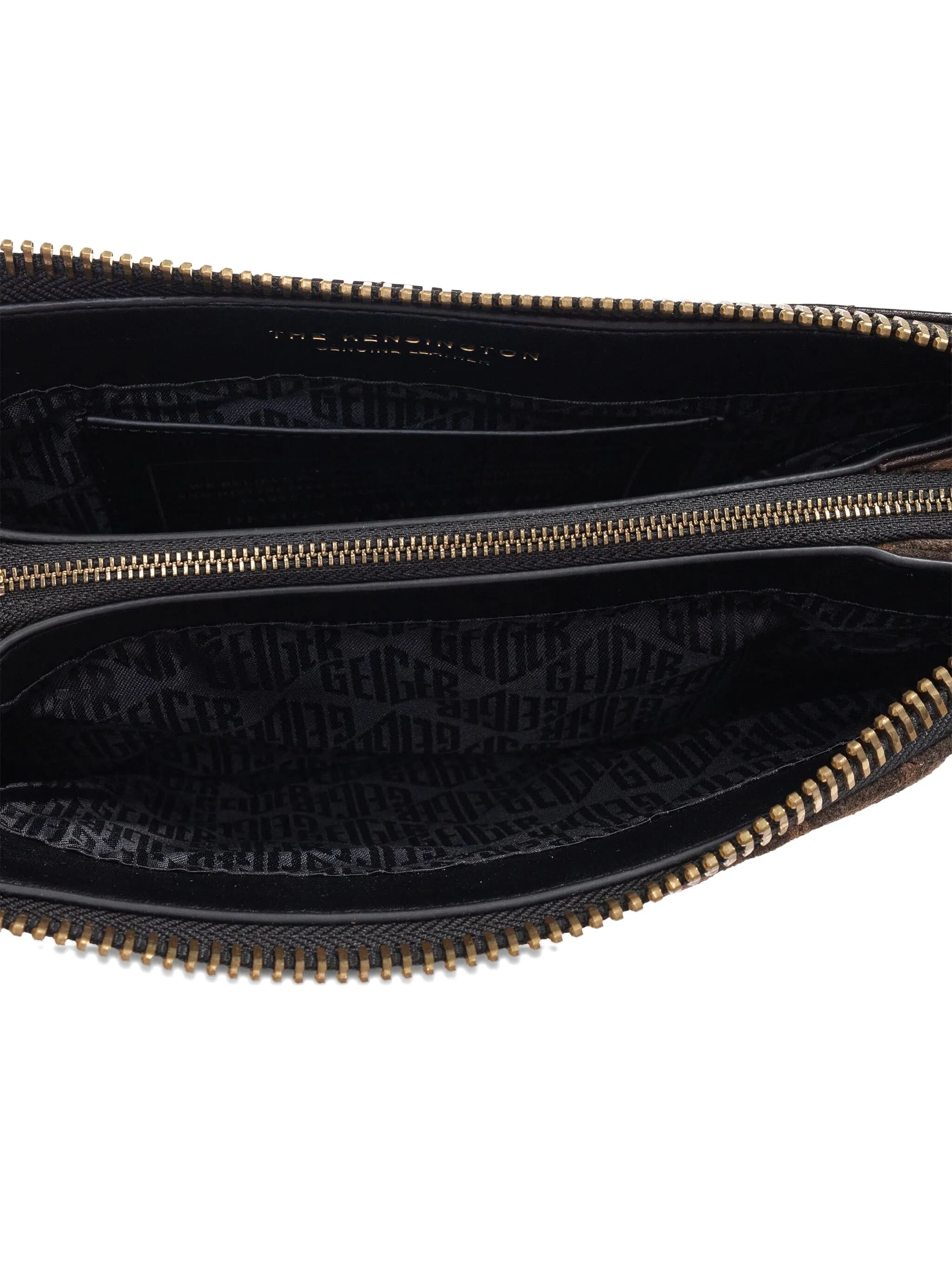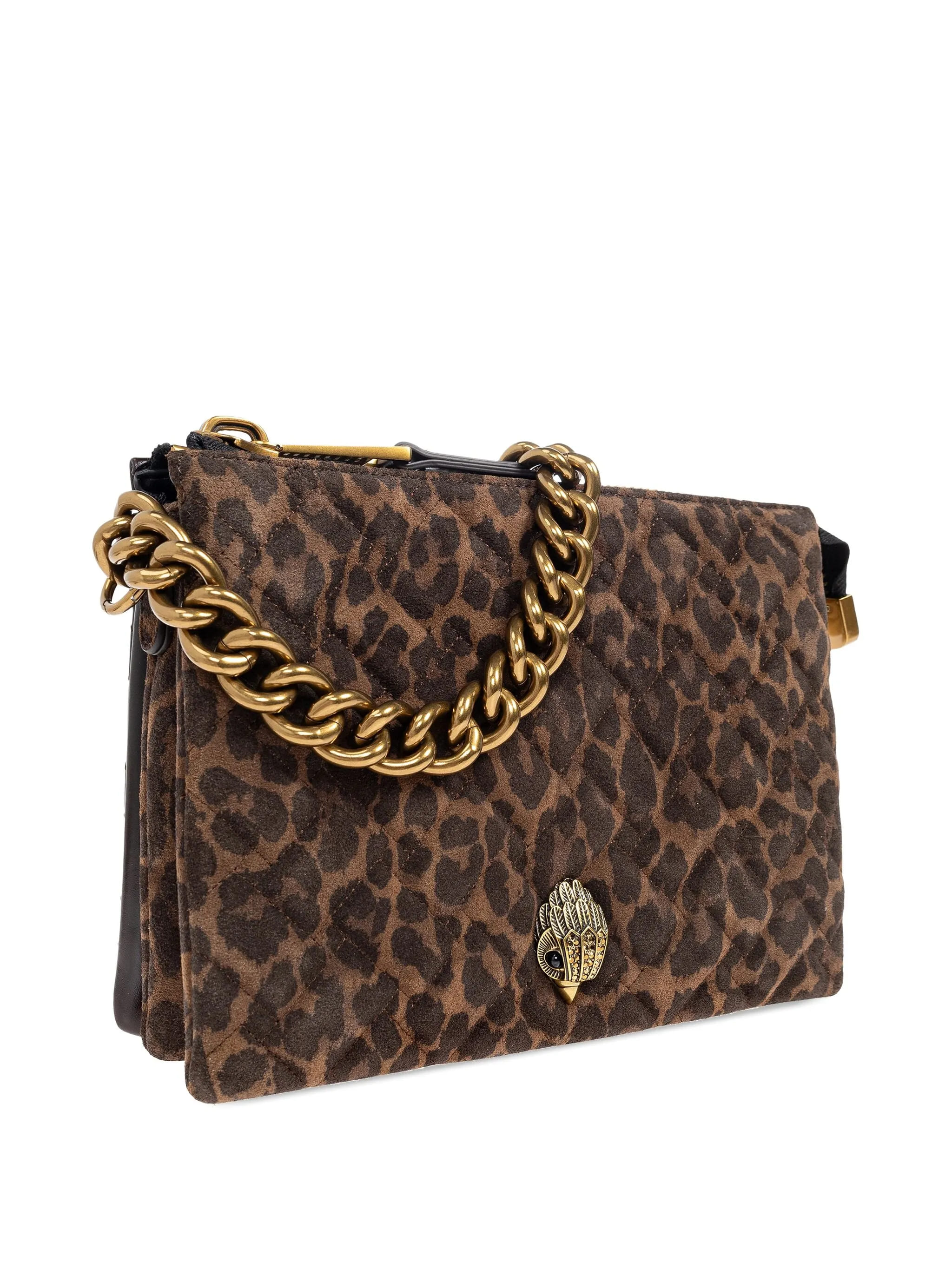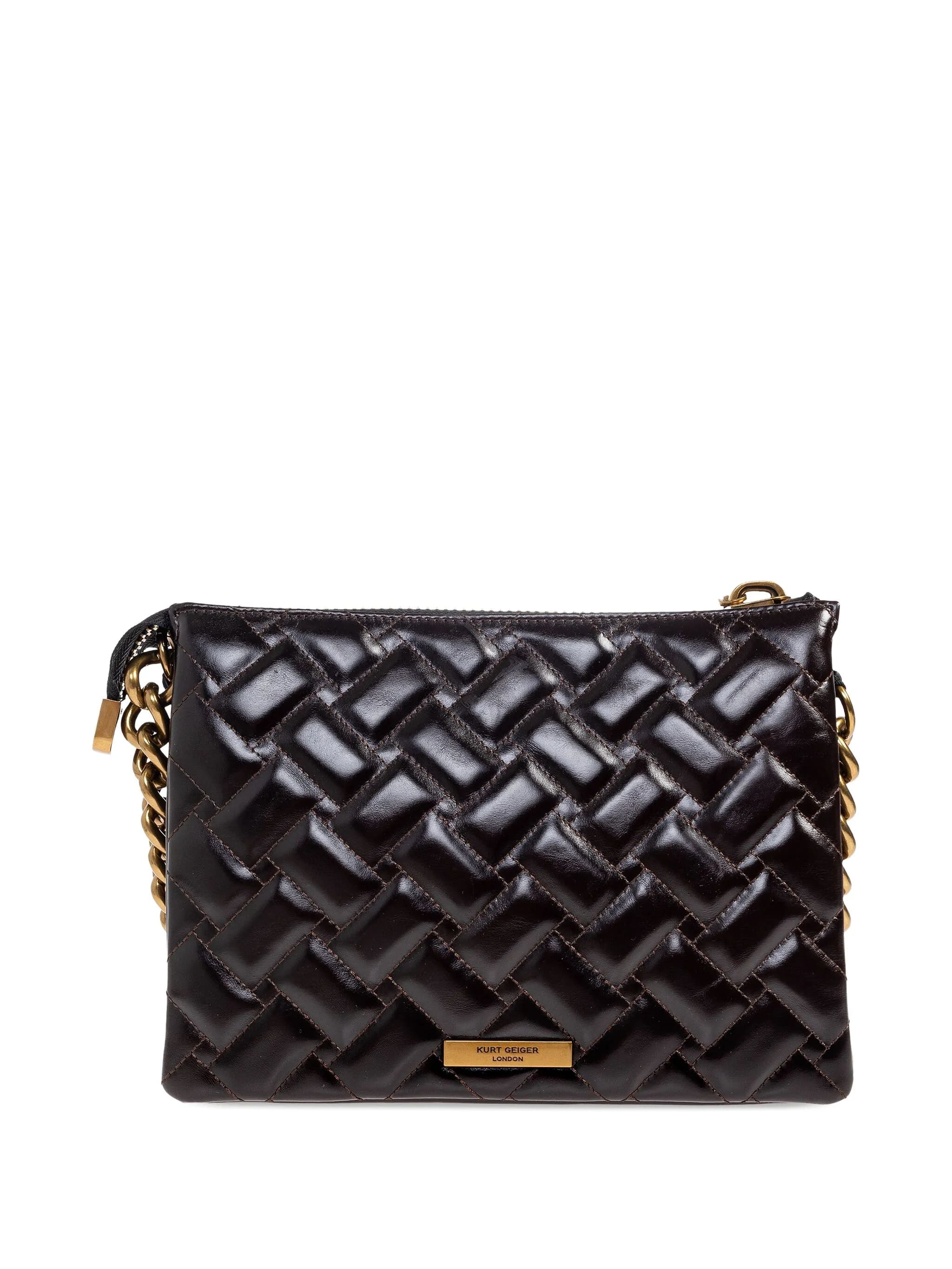 Eleva tus looks con el bolso shopper Kensington de Kurt Geiger London, un modelo que fusiona funcionalidad y estilo con el toque irreverente del animal print. Este diseño estructurado y acolchado, en un elegante tono marrón oscuro, incorpora una correa de cadena larga que permite llevarlo al hombro o cruzado.