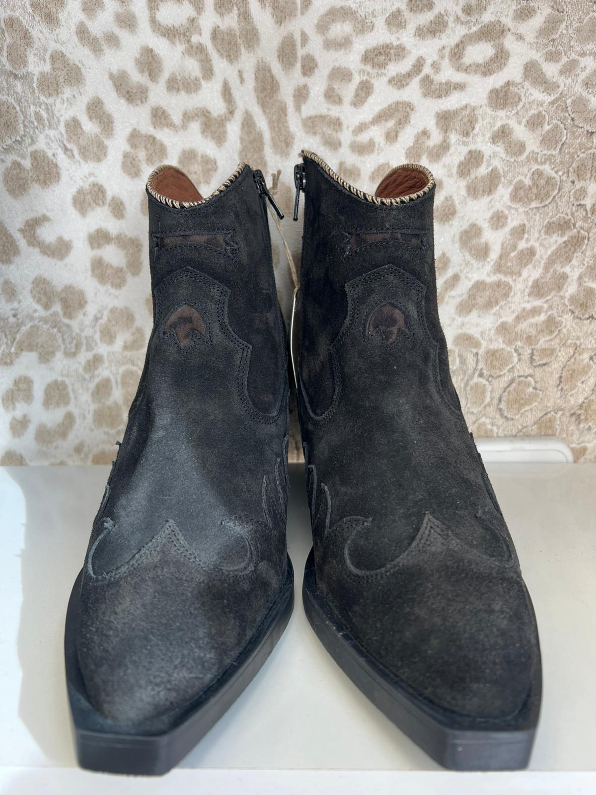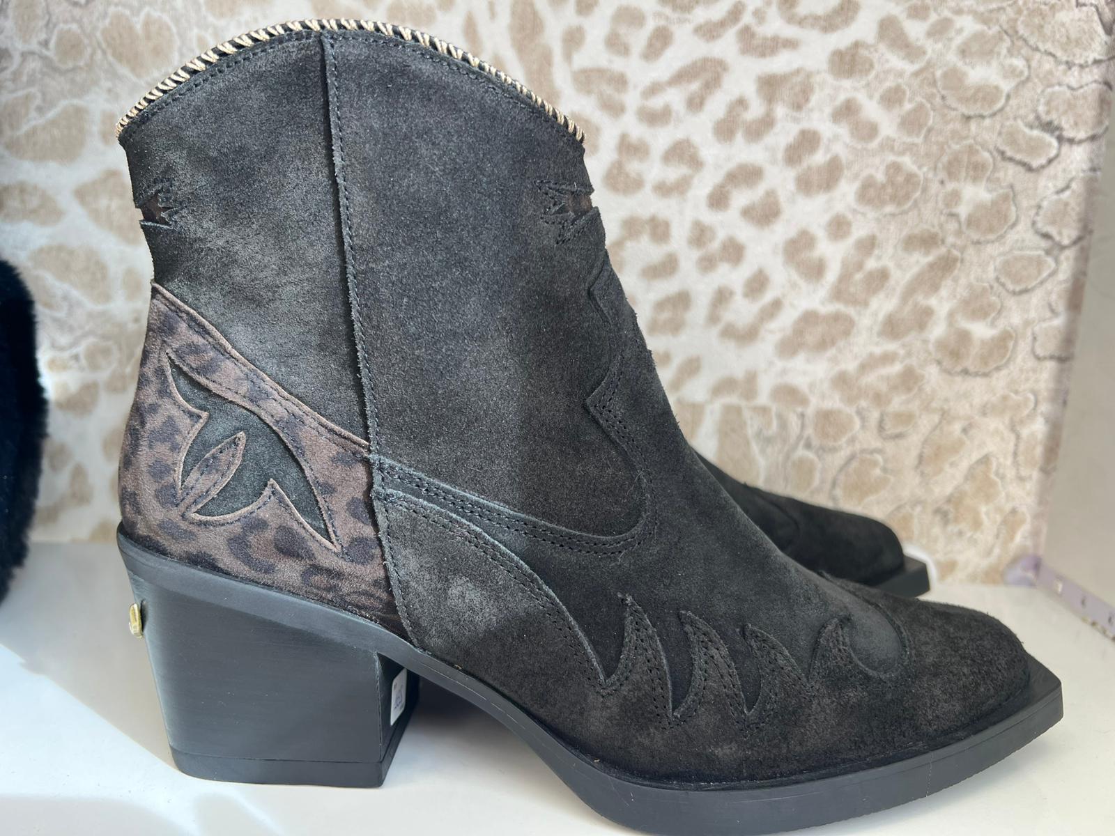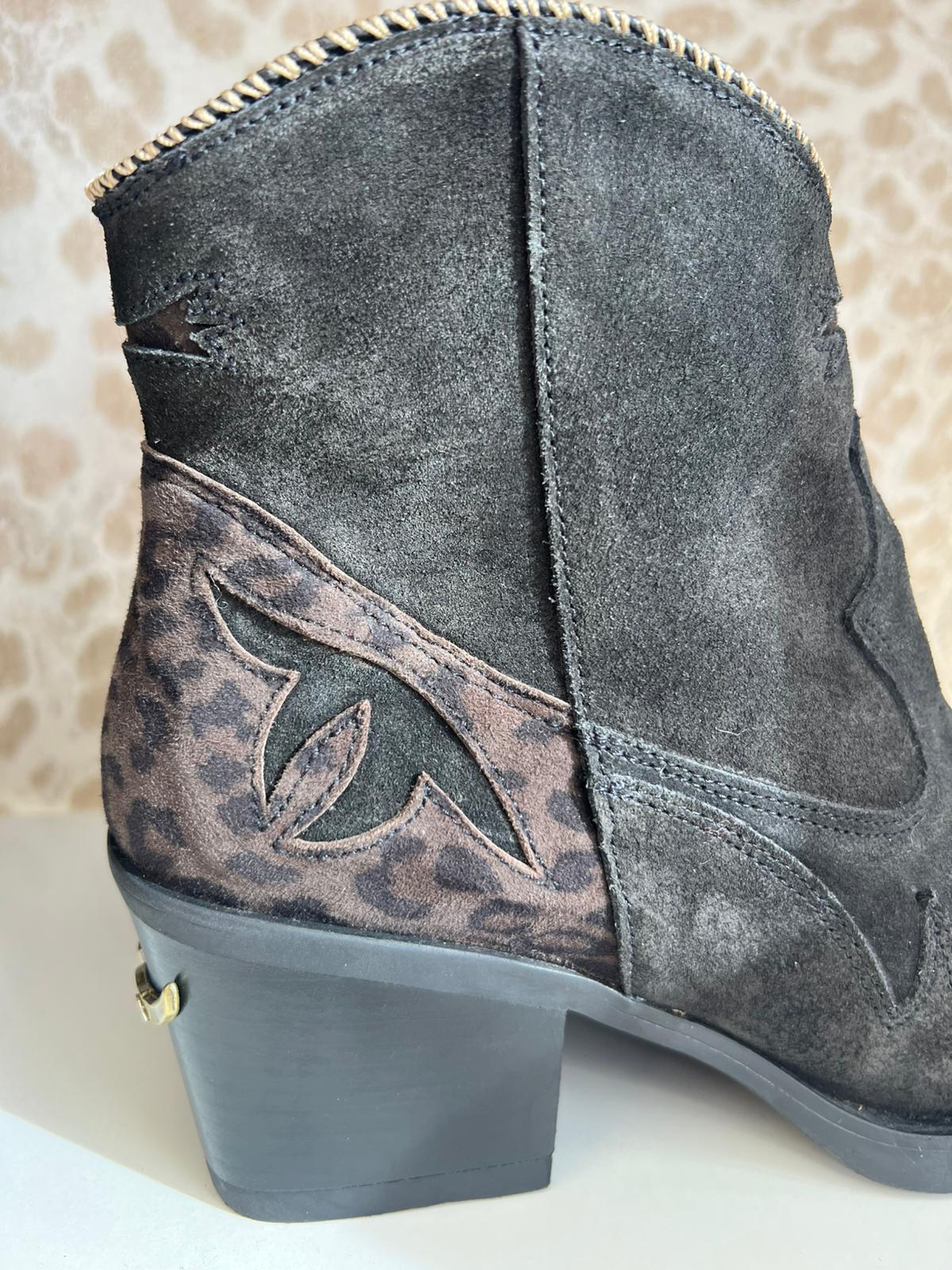 Botín negro de ante con animal print Nemonic – Elegancia y carácter salvaje