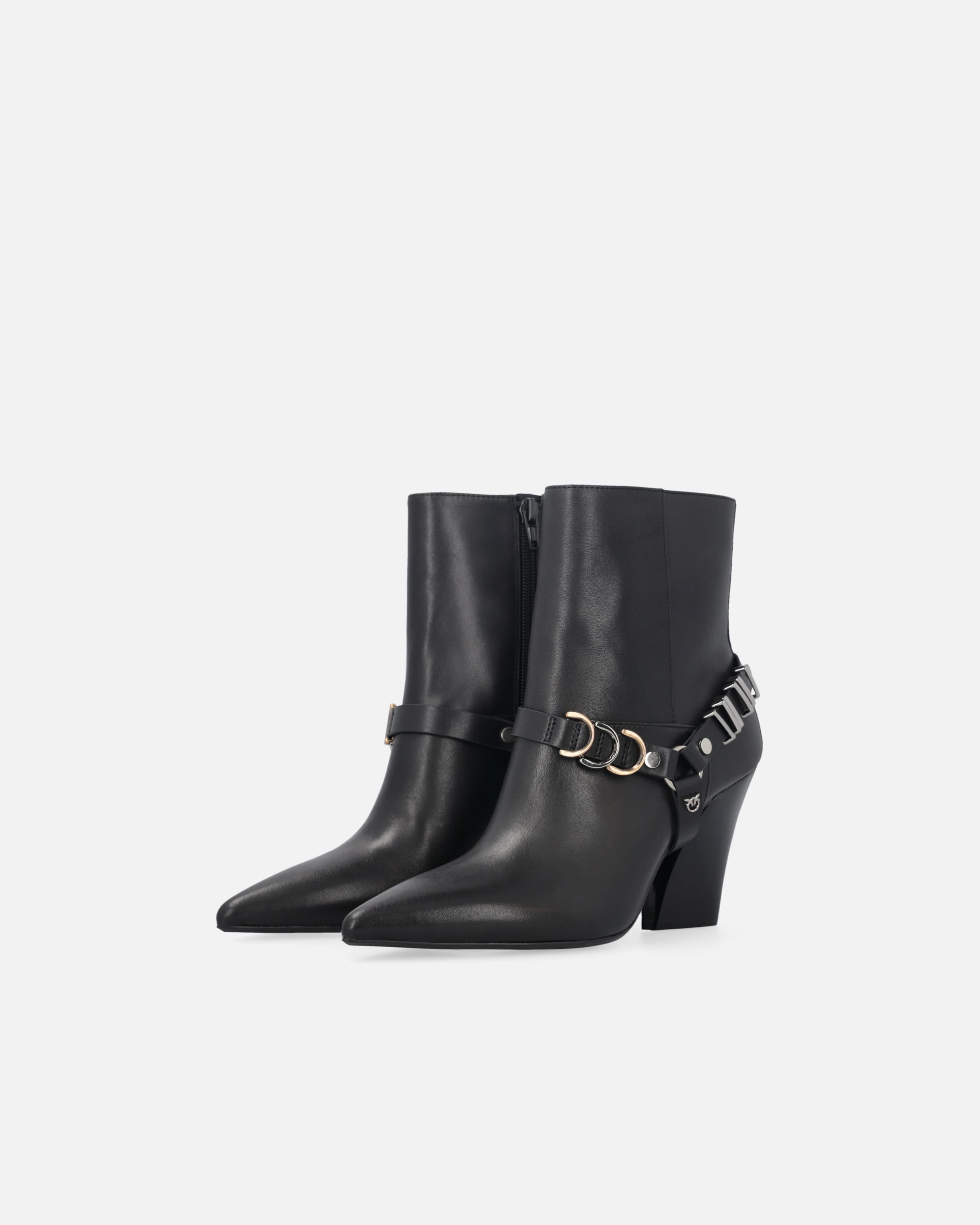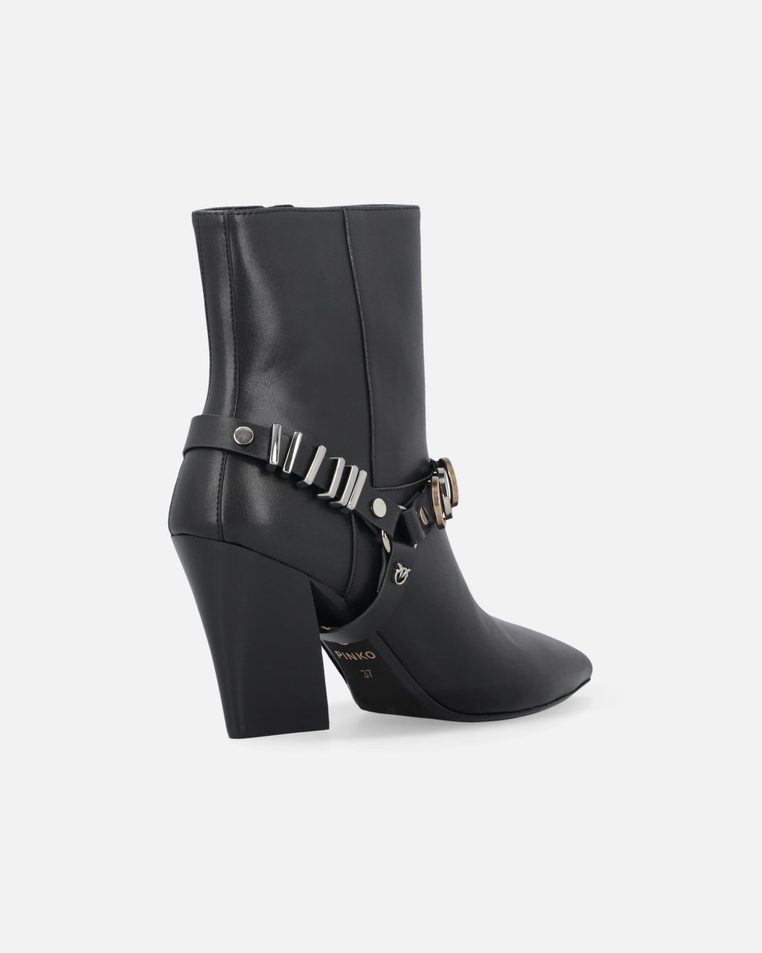 Las botas VIOLA 02 de PINKO combinan a la perfección lujo y funcionalidad. Confeccionadas en piel de becerro suave con un sutil acabado brillante, ofrecen un diseño moderno con caña de 13 cm y un tacón cómodo de 8,5 cm que estiliza sin renunciar al confort.