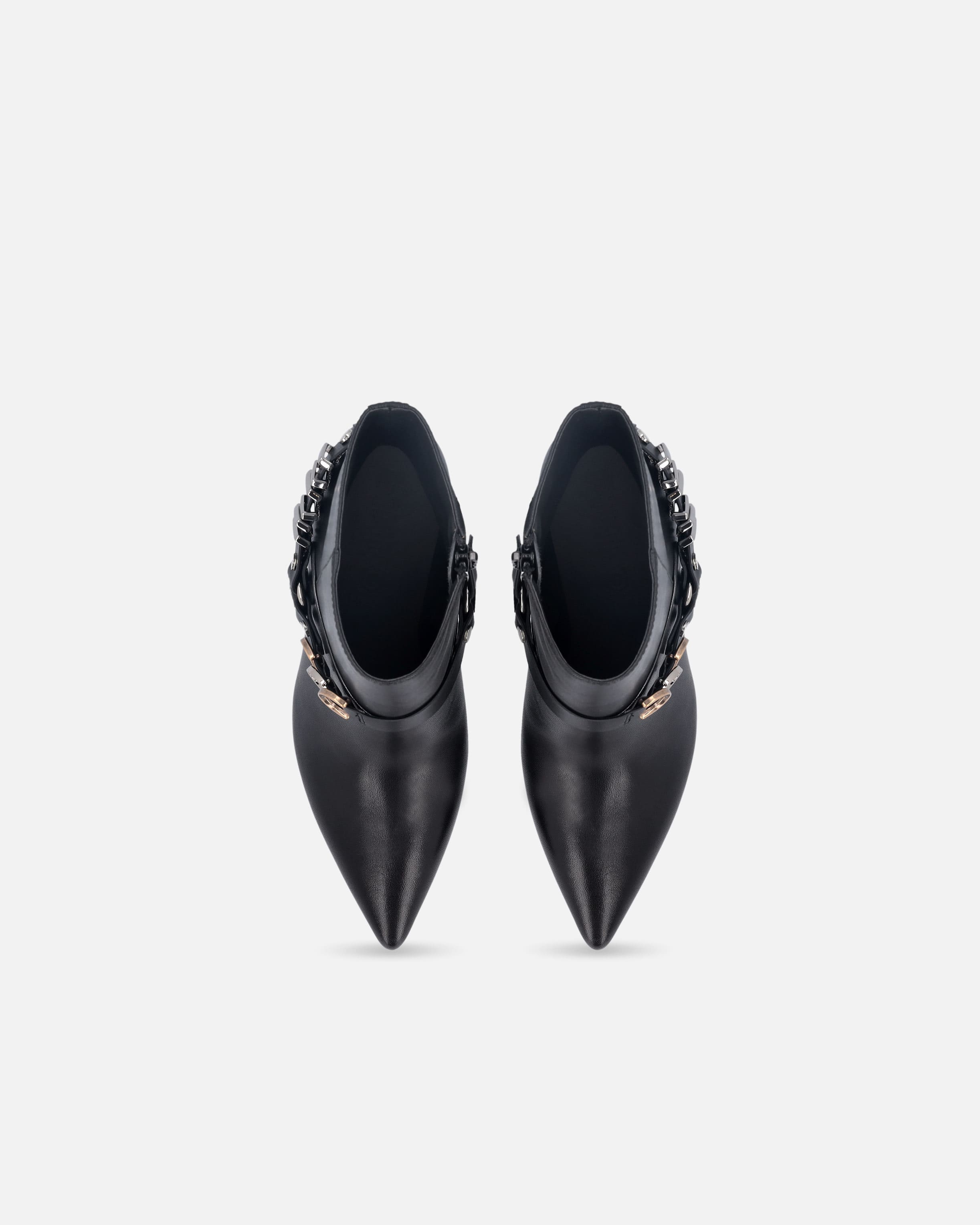 Destacan por su triple correa cruzada extraíble, adornada con el logotipo Love Birds en acero y detalles metálicos en dorado y plateado, que permiten adaptar el estilo de la bota según la ocasión. Su silueta versátil las convierte en un imprescindible tanto para looks de día como para conjuntos de noche.