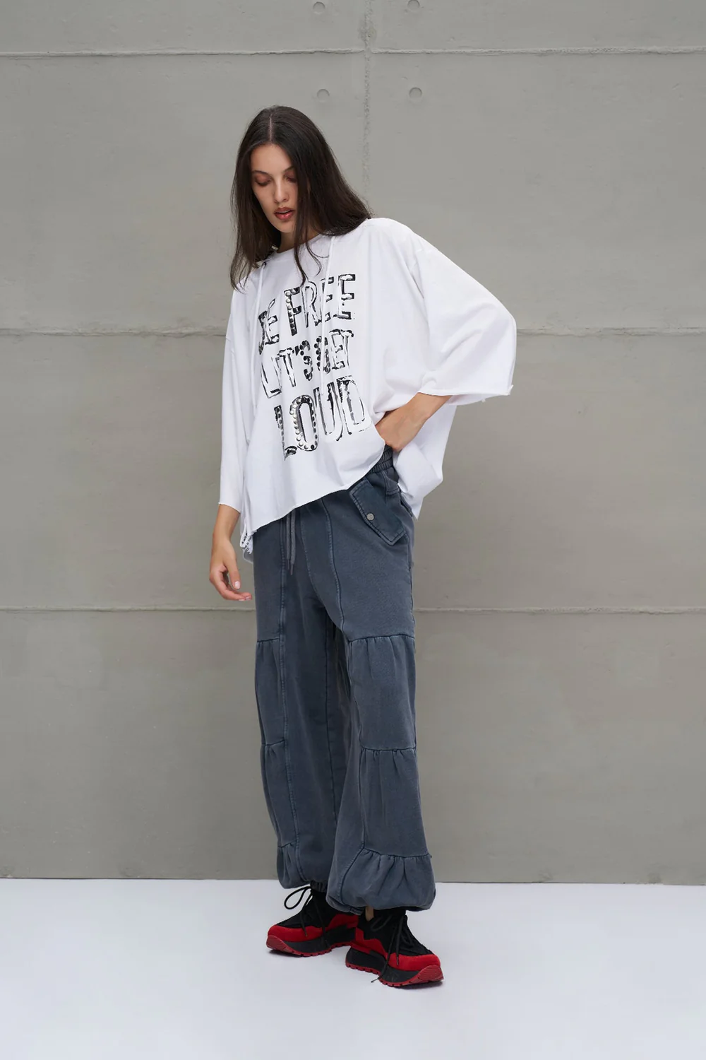 Esta camiseta blanca de estilo oversize lo tiene todo para marcar la diferencia en tus looks más urbanos. Confeccionada en 100% algodón, es cómoda, ligera y con un diseño que no pasa desapercibido.
