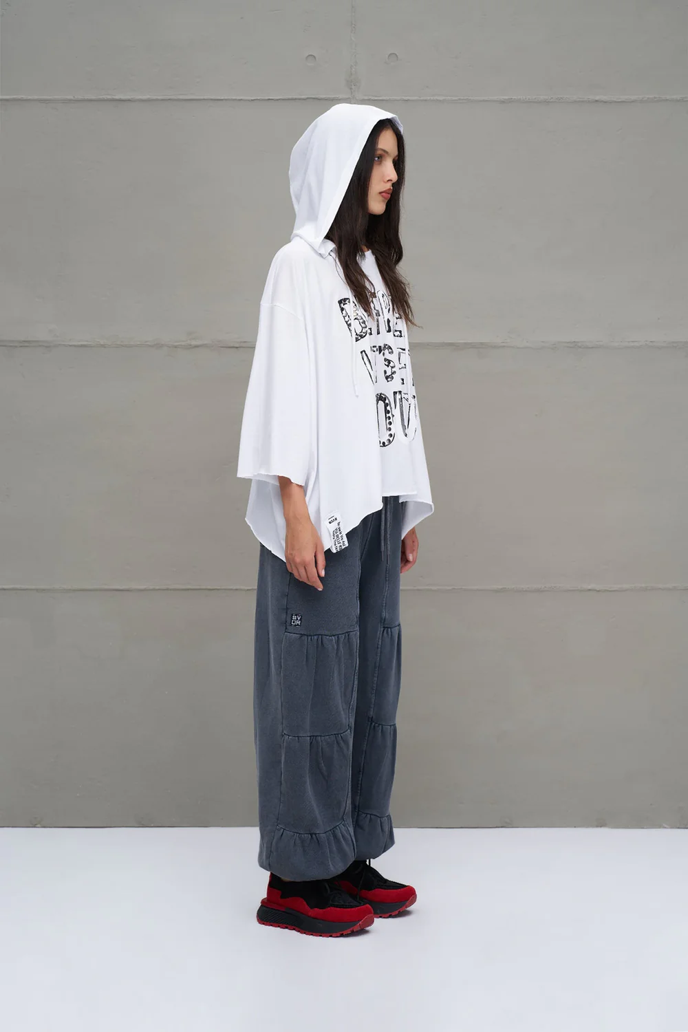 Camiseta Blanca Asimétrica con Capucha – VDR