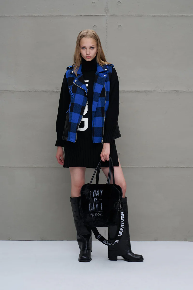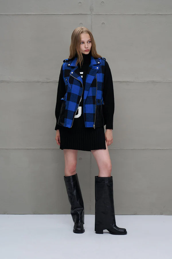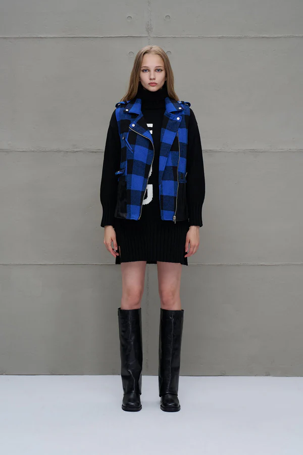 Chaleco a cuadros azul y negro de piel sintética VDR