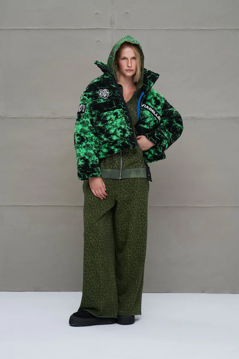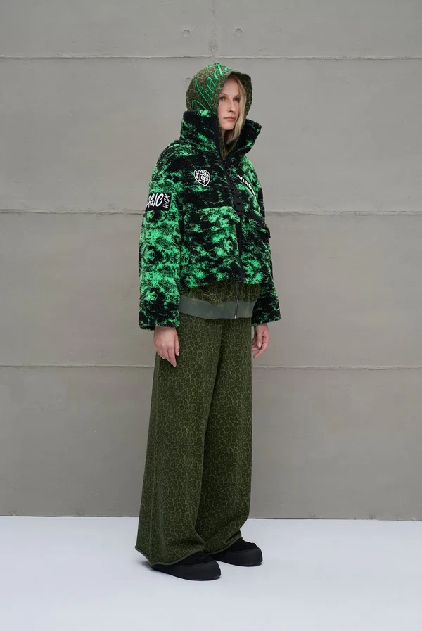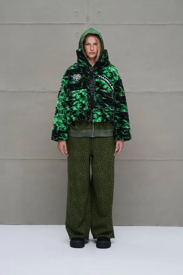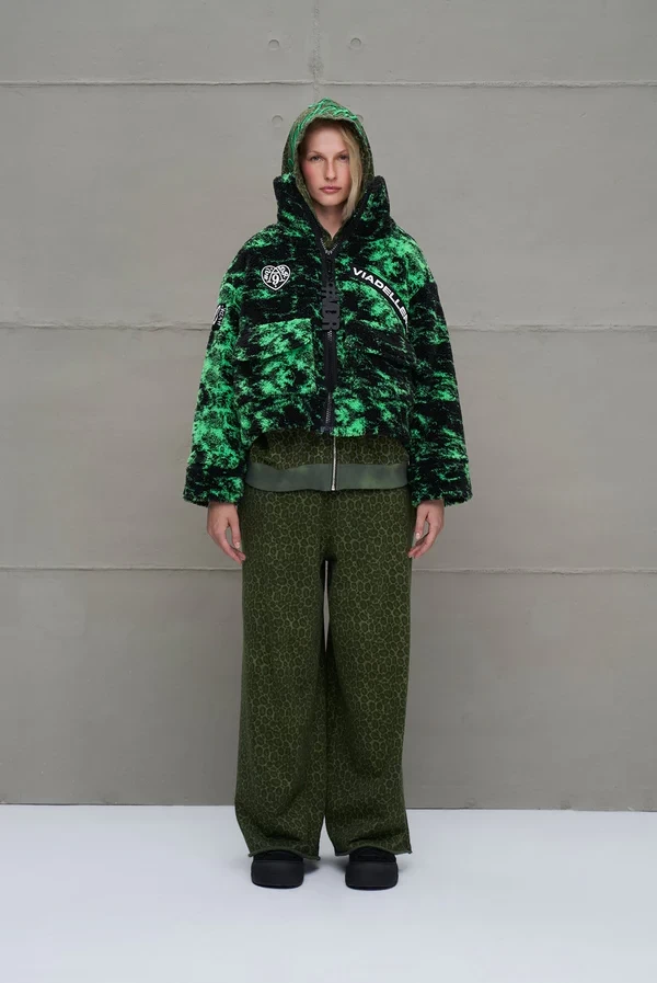 Chaqueta corta extragrande de piel sintética verde neón y negra VDR VIA DE LA ROSE