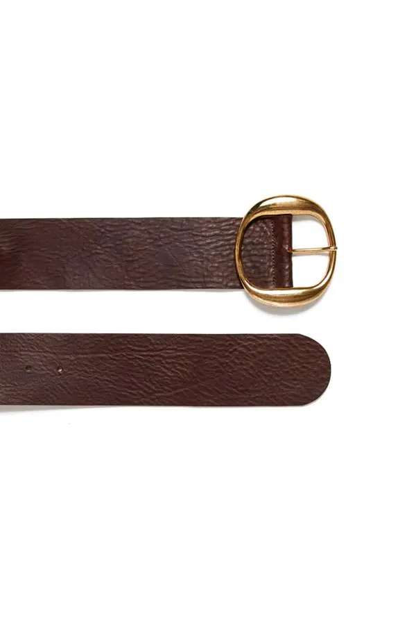 Cinturón ancho de piel marrón oscuro con hebilla ovalada dorada – Aniye By