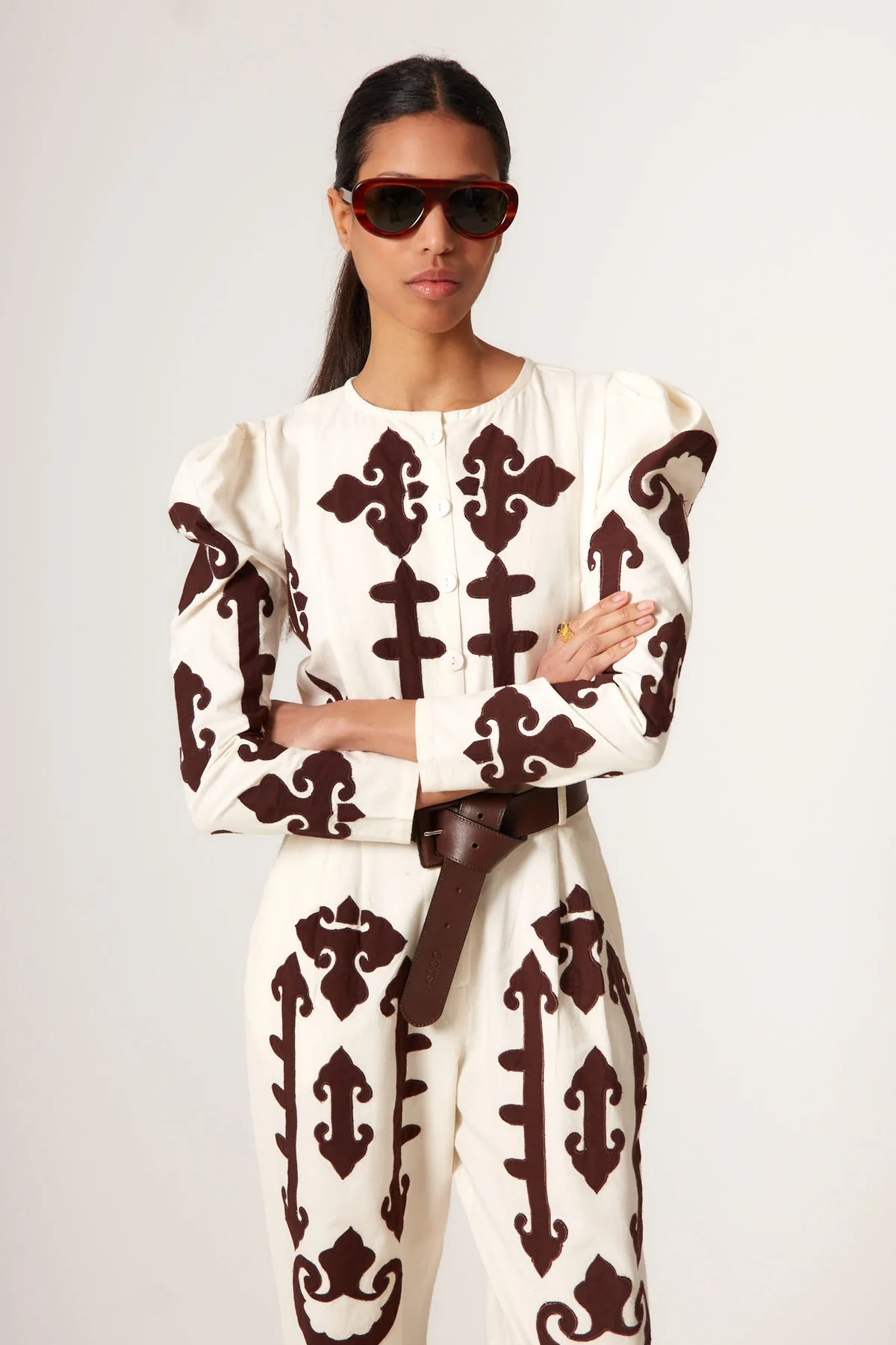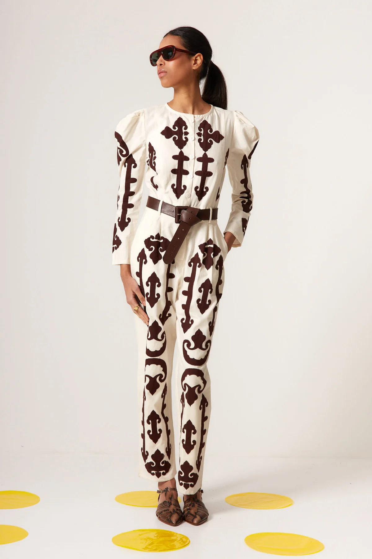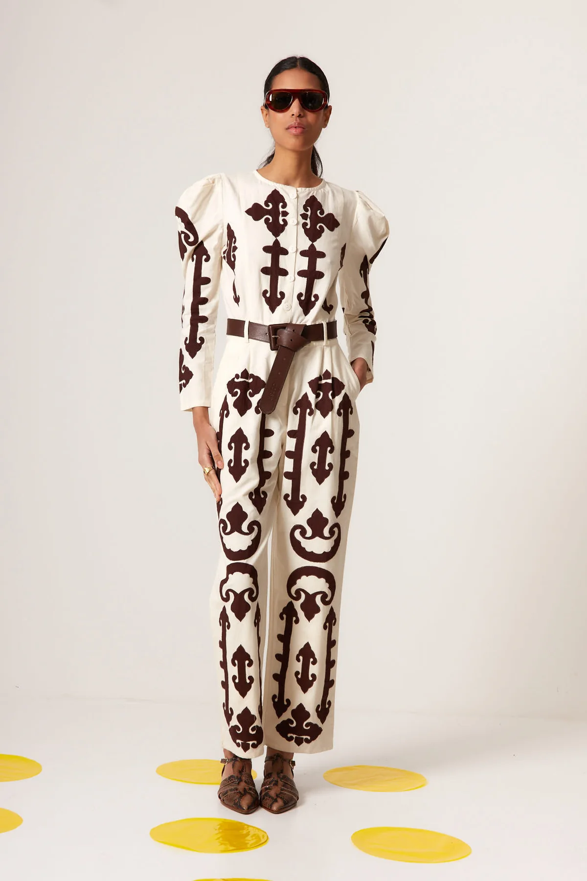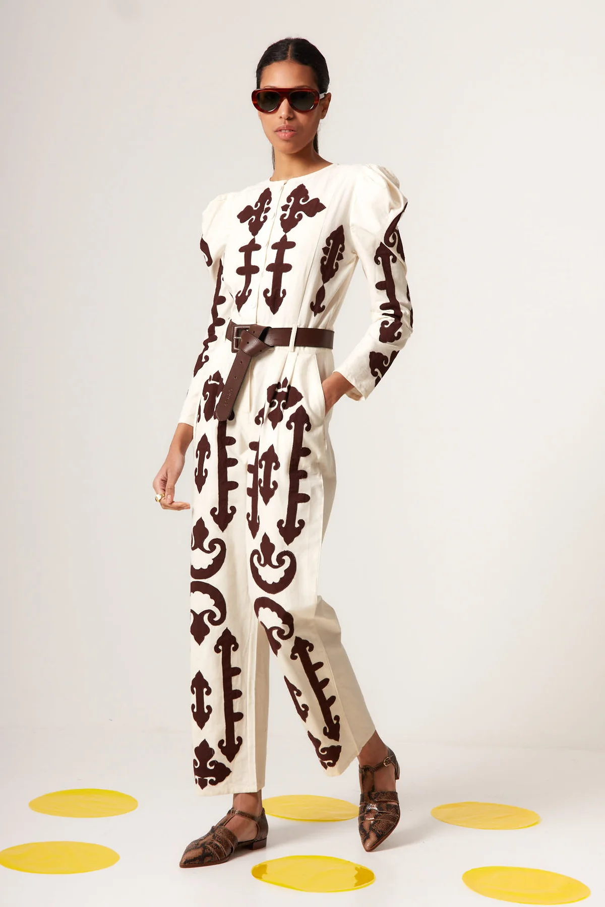 El mono AMALFI crudo de Coosy es una pieza protagonista que combina elegancia contemporánea y estética artesanal. Confeccionado en tejido ligero de caída fluida, este mono largo estampado destaca por su diseño ornamental en contraste inspirado en motivos clásicos mediterráneos. No contiene cinturon.