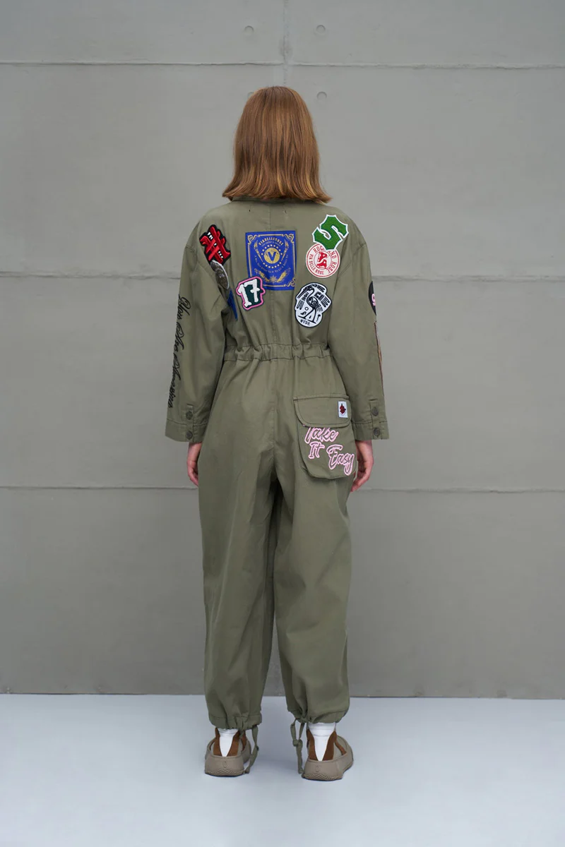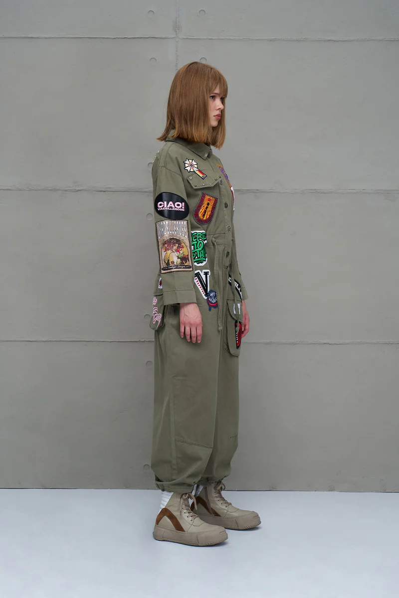 Este mono oversize caqui es la prenda clave para un look urbano y desenfadado con personalidad. Confeccionado en 100% algodón, presenta un diseño holgado en resistente lona, ideal para entretiempo o días de movimiento. El cuello camisero, el cierre frontal con botones y el detalle de parche bordado aportan estilo y carácter a esta prenda funcional.