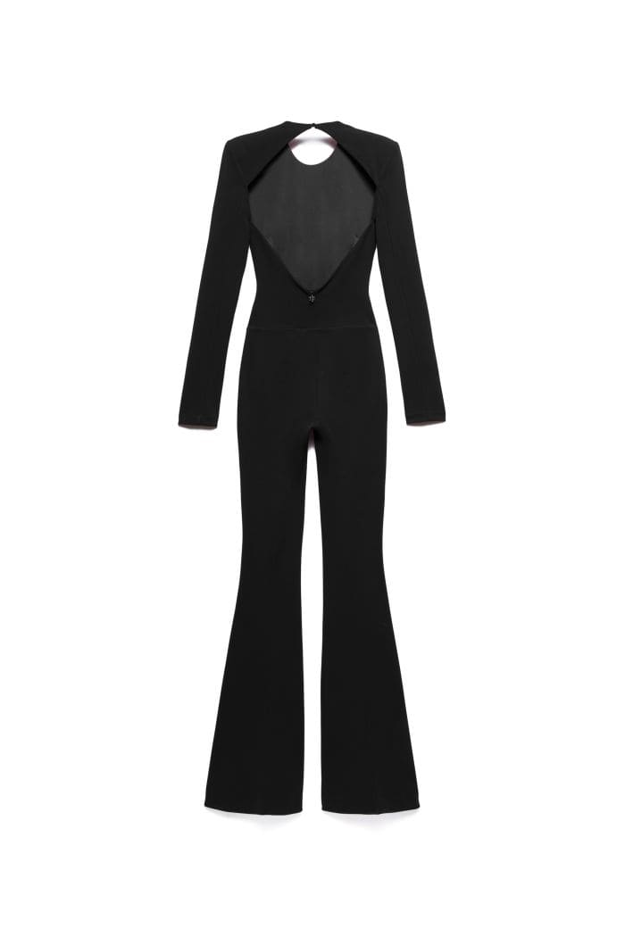 El mono Sienna negro de Aniye By es una prenda icónica que mezcla sensualidad, elegancia y carácter. Diseñado en un tejido elástico que se adapta perfectamente a la silueta, cuenta con mangas largas, cuello redondo y un espectacular corte en forma de lágrima en la espalda. Su pernera acampanada aporta un aire sofisticado y estiliza la figura, convirtiéndolo en el look perfecto para eventos nocturnos, cócteles o fiestas especiales.