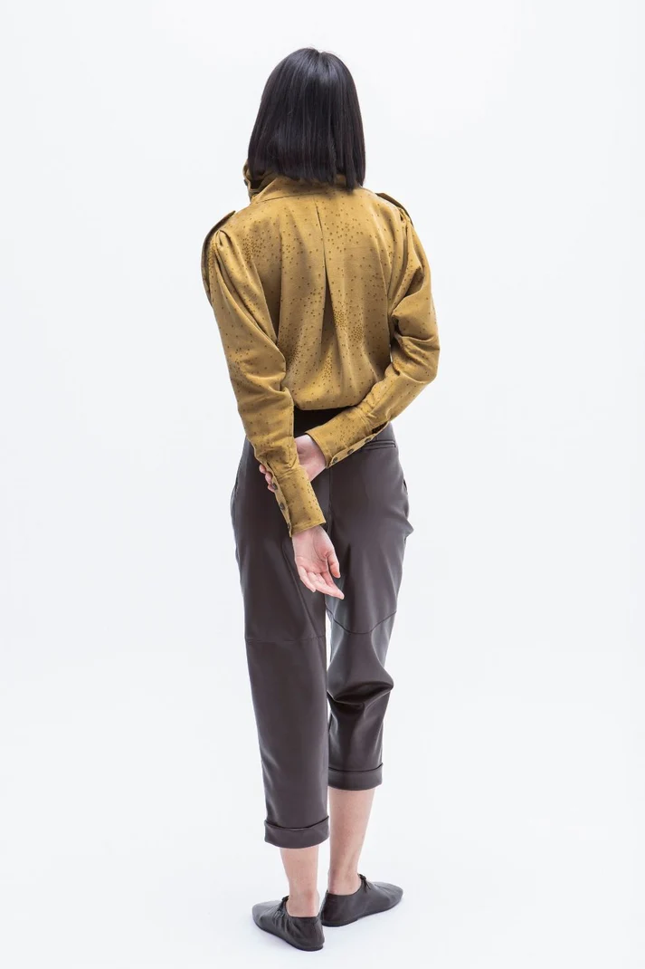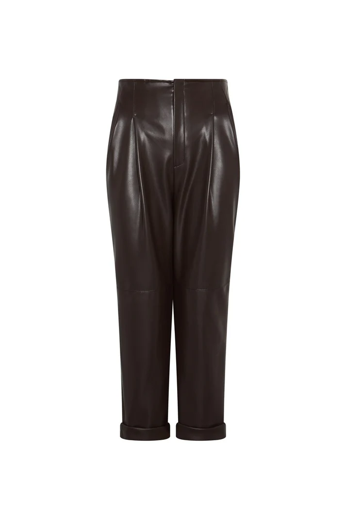 Pantalón boyfriend de ecopiel marrón con cintura alta – Masavi