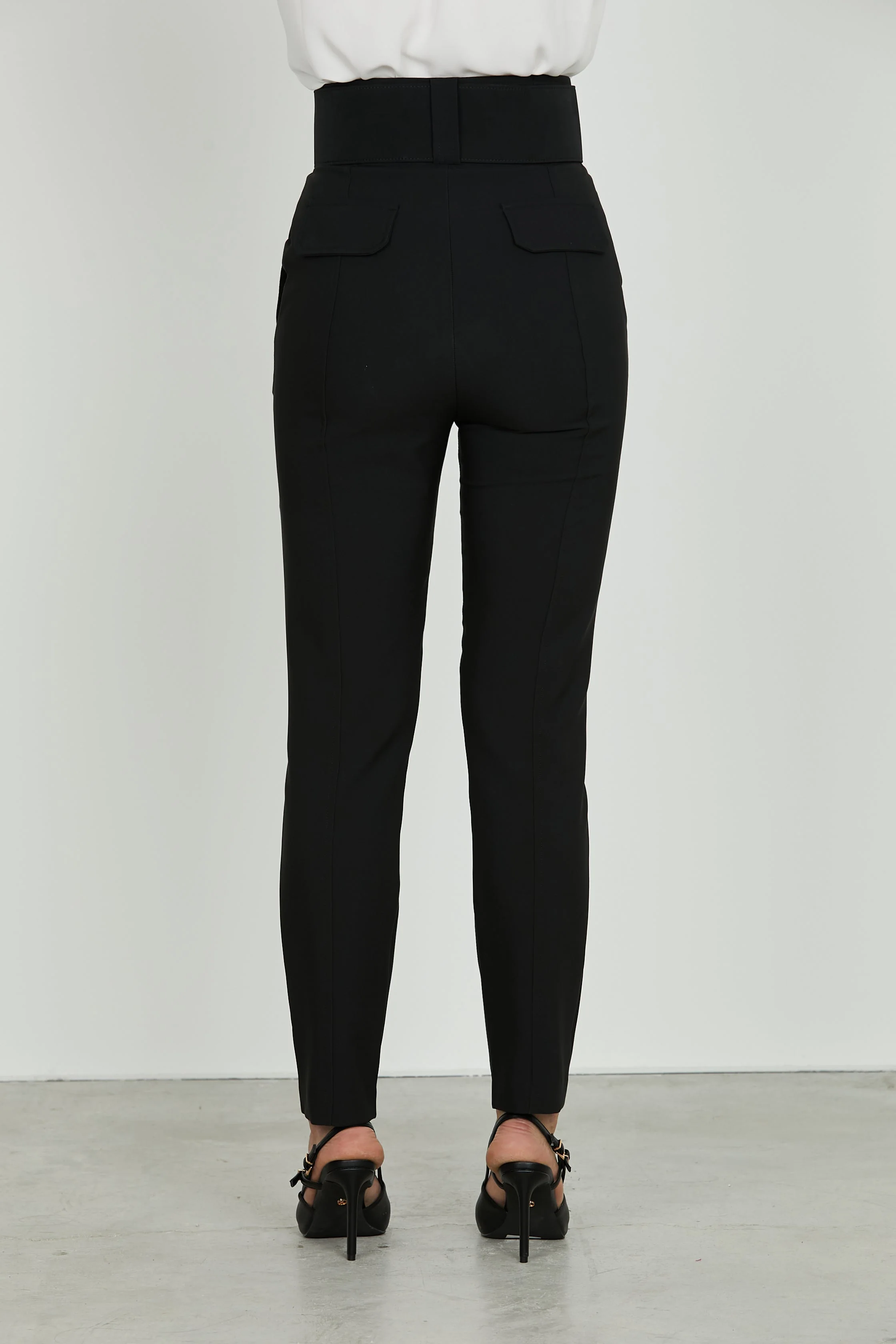 Elegancia con carácter. El pantalón LOREM es esa prenda que estiliza al instante gracias a su corte entallado, su talle alto estructurado y el cinturón a juego que define la silueta de forma impecable. Con bolsillos franceses, tapetas decorativas y costura central marcada, este diseño italiano une lo clásico con un aire moderno y urbano.