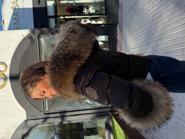 El diseño incorpora un cuello y puños decorados con auténtica piel de zorro en tono natural, aportando un toque sofisticado y exclusivo. Su cierre frontal con cremallera metálica garantiza un ajuste cómodo, funcional y moderno.