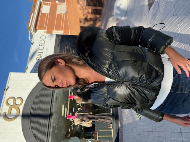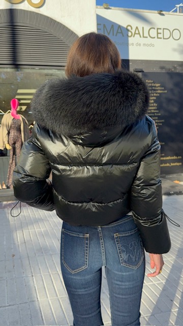 Confeccionado con relleno de pluma natural, ofrece una protección térmica excelente sin renunciar a un diseño ligero y actual. Su capucha está adornada con piel natural de zorro al tono, aportando volumen, suavidad y un toque de lujo indiscutible.