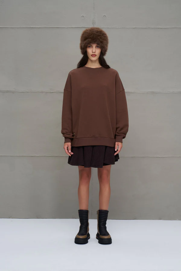Este sombrero redondo marrón de piel sintética es una pieza con aire vintage que eleva cualquier look. Su diseño estructurado y su textura suave aportan un toque sofisticado y original, perfecto para los días más fríos o como complemento de estilo durante todo el año.