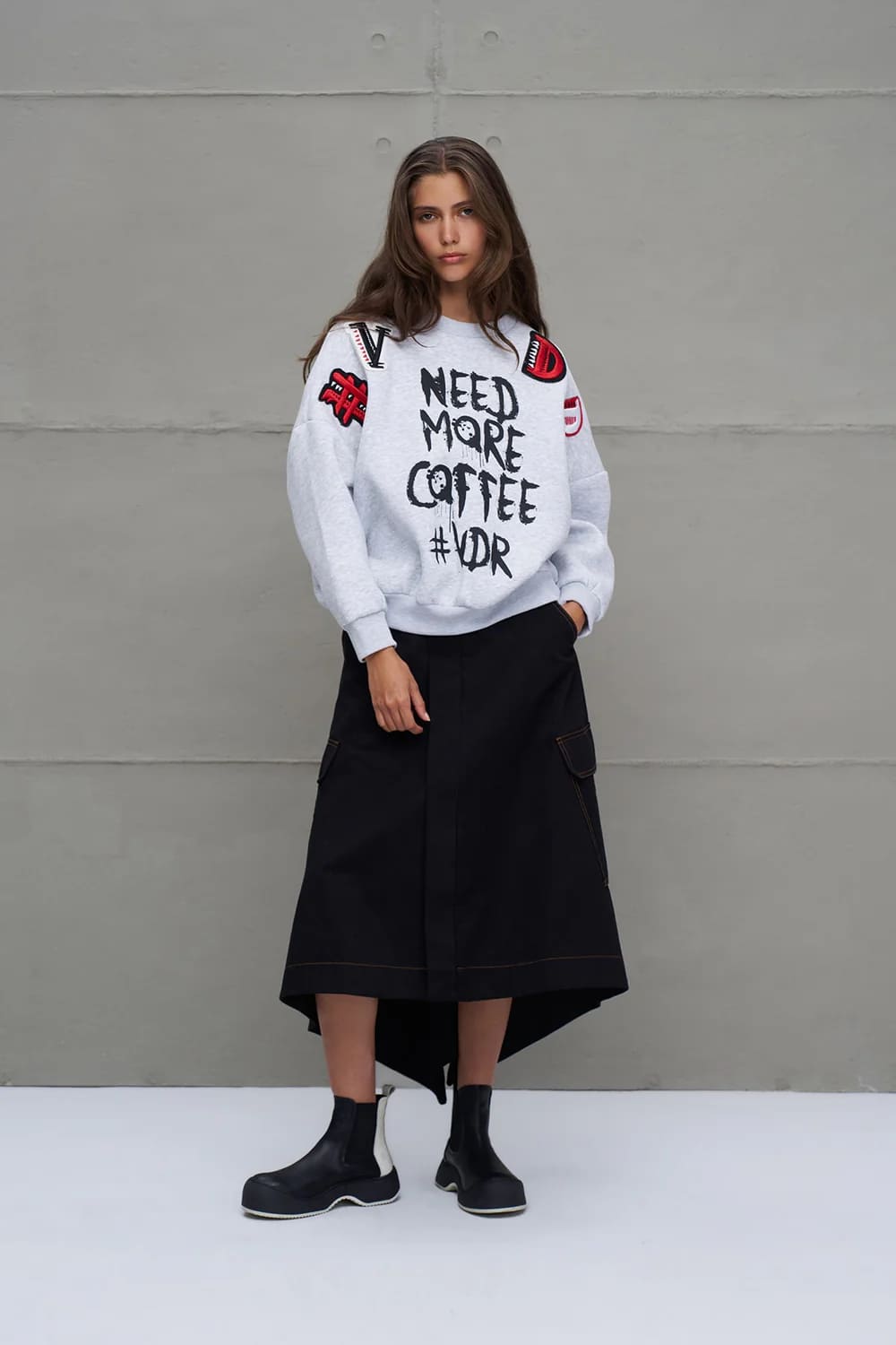 El estampado de eslogan en la parte delantera junto al parche bordado le da un aire actual y distintivo, perfecto para quienes buscan prendas con carácter. Ideal para combinar con jeans, leggings o faldas midi para un estilo casual con actitud.