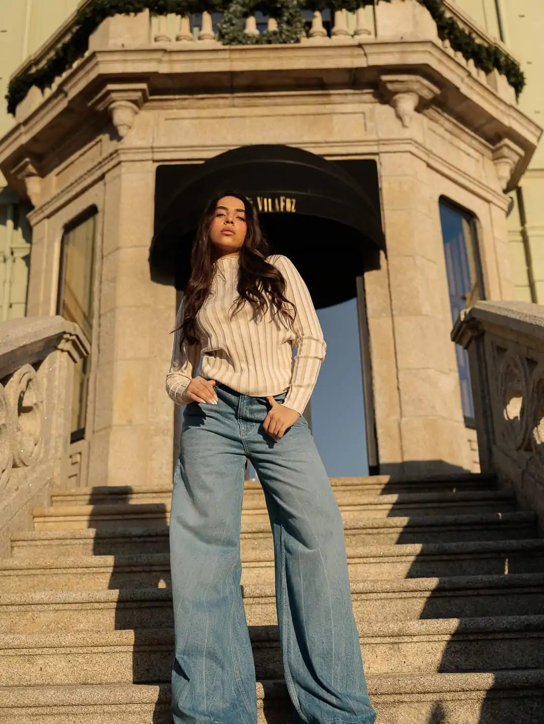 Los tejanos anchos de Scripta son la prenda estrella de esta temporada. Su diseño fluido y de pierna súper ancha crea una silueta estilizada, moderna y cómoda a la vez. Confeccionados en denim azul claro lavado, combinan a la perfección con tops ajustados o camisas oversize para lograr un look casual con personalidad.