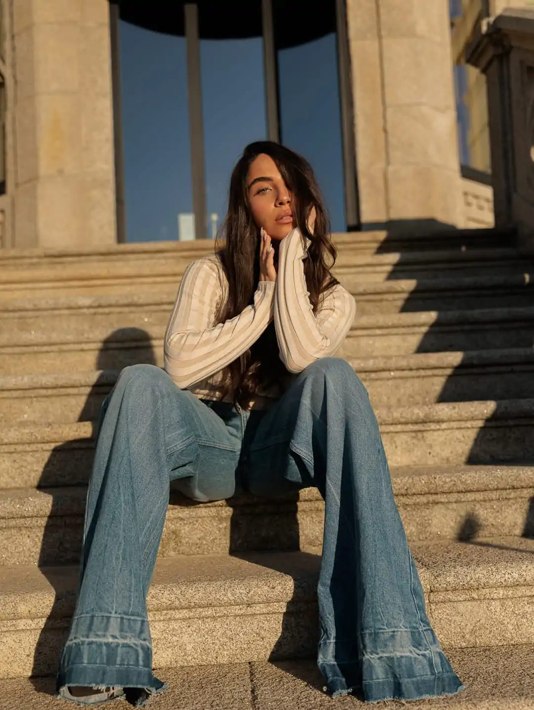 Cintura media-alta, bajo deshilachado y detalles de costuras visibles que aportan un aire urbano y actual. Ideales para combinar con zapatillas, botas o tacones según la ocasión. Un básico reinventado para mujeres que no quieren pasar desapercibidas.
