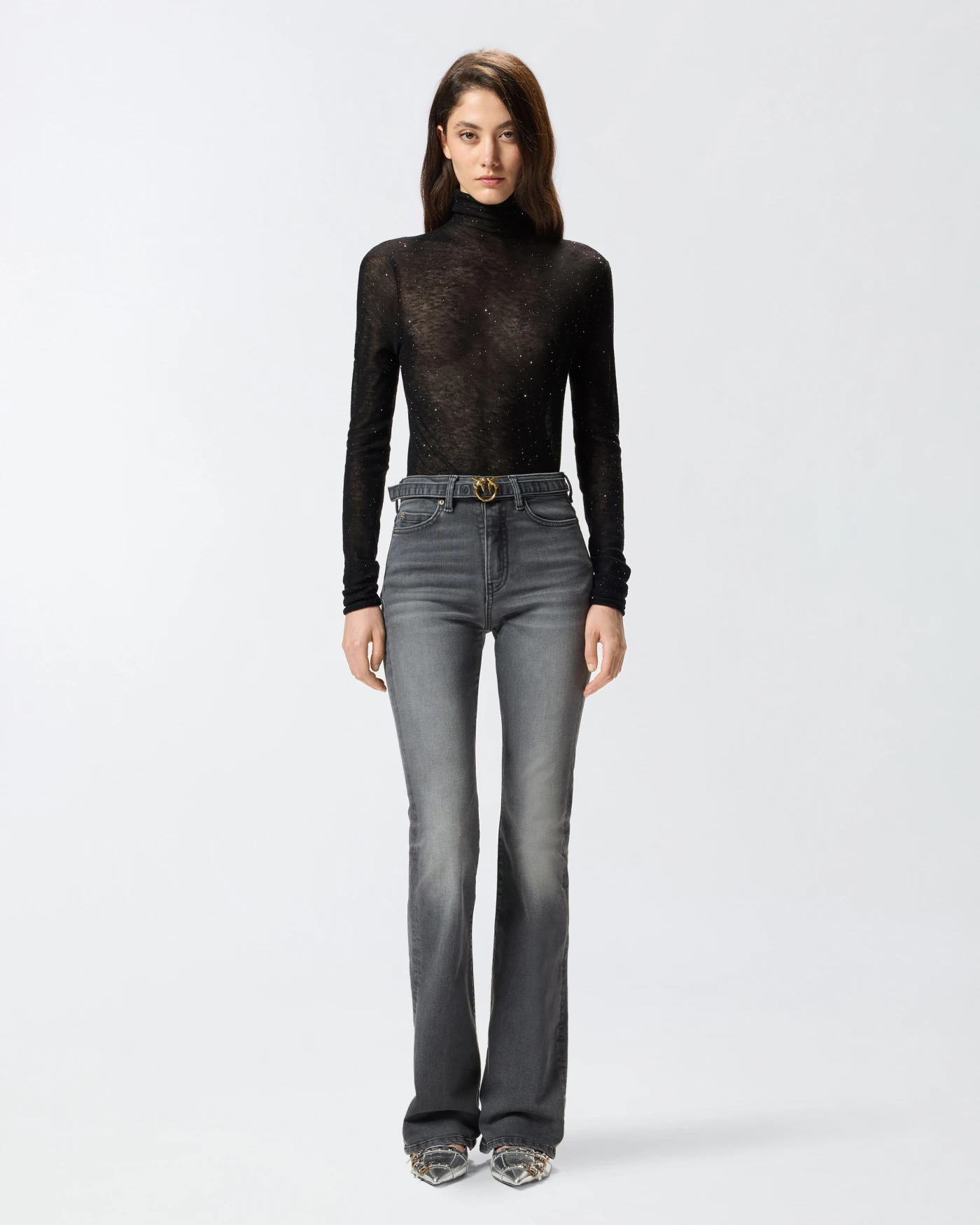 Estos vaqueros de corte evasé de PINKO son la fusión perfecta entre estilo retro y tecnología textil moderna. Confeccionados en un denim power elástico gris oscuro con efecto desgastado, ofrecen una silueta femenina que se ajusta desde la cadera hasta la rodilla y se ensancha elegantemente hacia el bajo. La tela de alta recuperación garantiza que el tejido conserve su forma incluso tras múltiples usos, evitando deformaciones y ofreciendo comodidad con efecto moldeador. Su composición en algodón parcialmente reciclado, poliéster y elastano refleja una apuesta por la sostenibilidad sin renunciar al diseño. El diseño se personaliza con detalles bordados como el logo Love Birds en el bolsillo trasero derecho, un remache decorativo en el quinto bolsillo, y el bordado PINKO en la parte trasera de la cintura. Incluyen un cinturón a juego en el mismo tejido, rematado con una elegante hebilla metálica Love Birds Diamond Cut, que aporta un acabado sofisticado y distintivo. ???? Composición de materiales: Tejido exterior: 82% algodón, 16% poliéster, 2% elastano Forro: 65% poliéster, 35% algodón