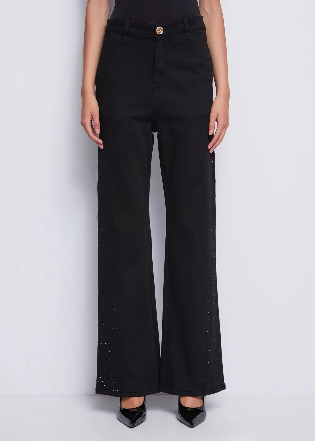 Pantalones denny rose vaqueros de mujer en mezcla de algodón elástico son la combinación perfecta entre comodidad y sofisticación. Diseñados con un ajuste favorecedor, incorporan un elegante detalle de pedrería lateral en el bajo, ideal para elevar cualquier look diario.