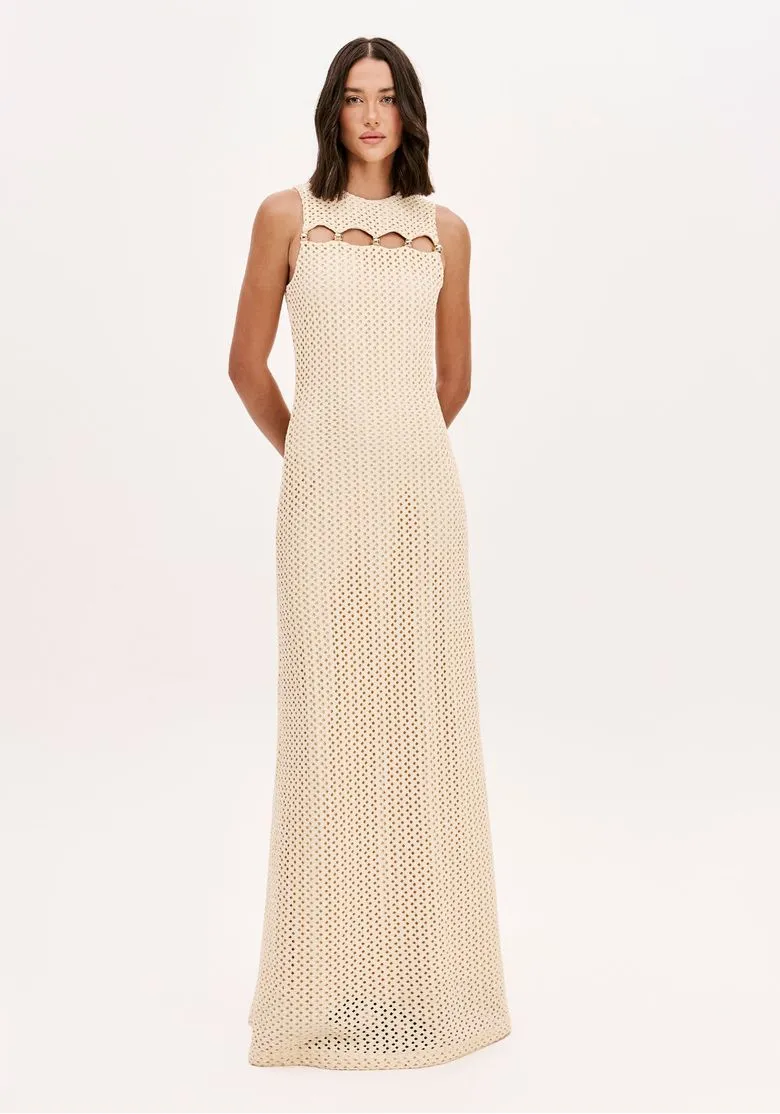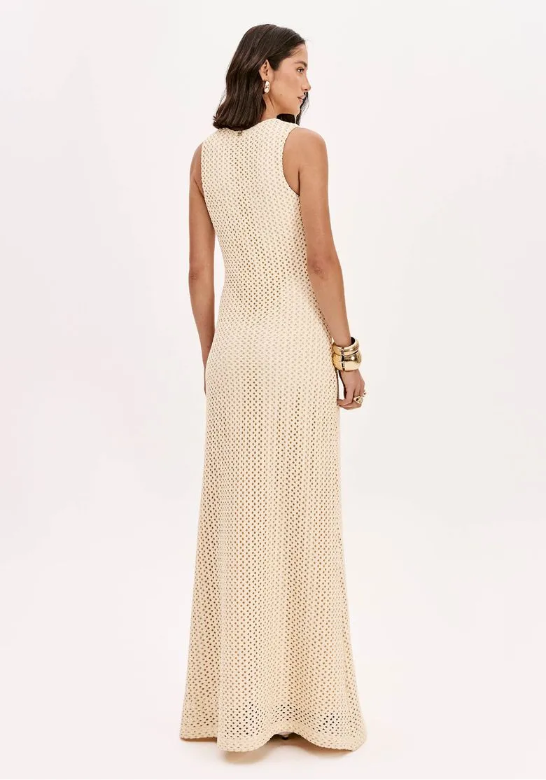 Vestido LANçA largo vainilla troquelado