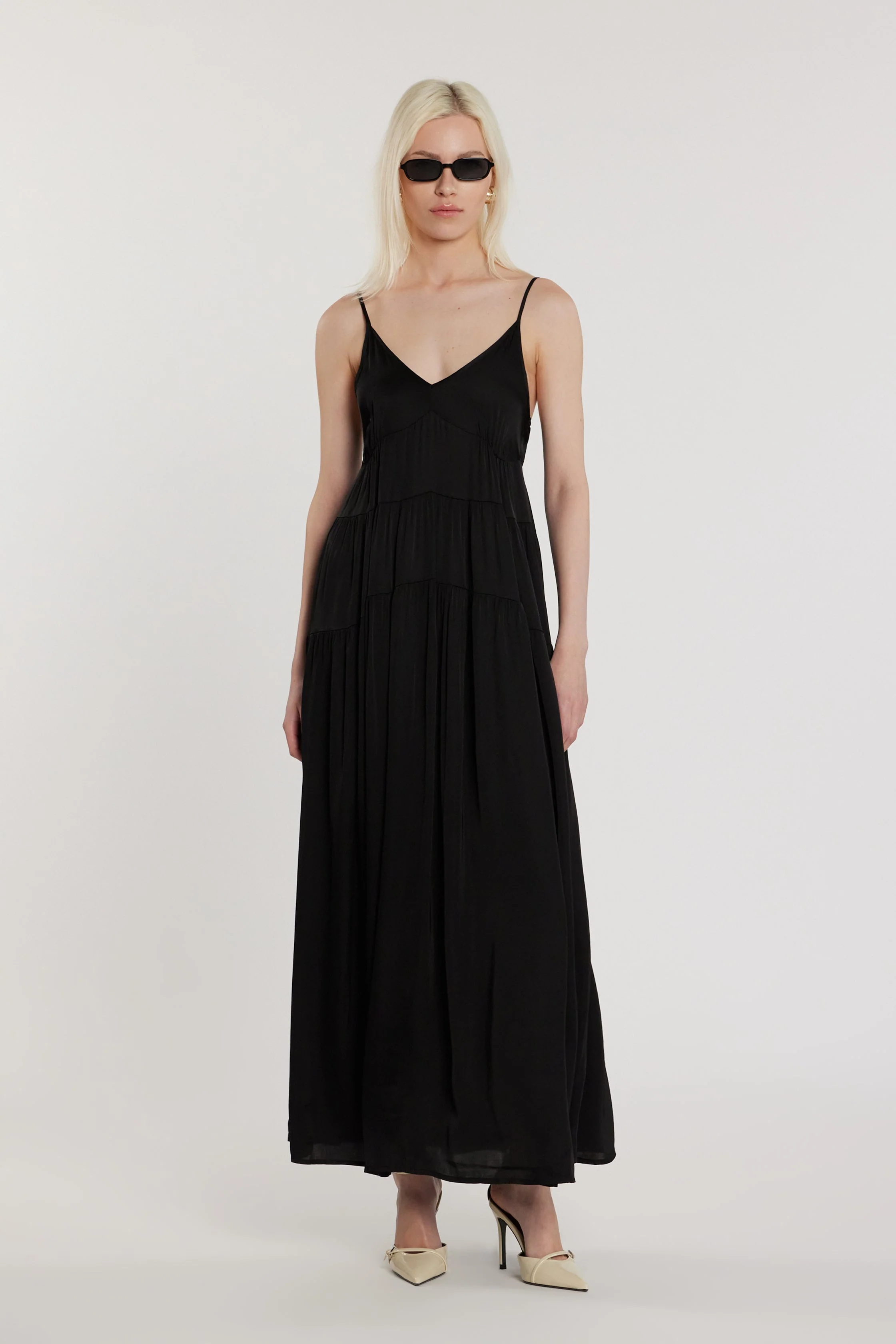 Vestido Largo MANNYS con Fruncido y Volantes en Raso