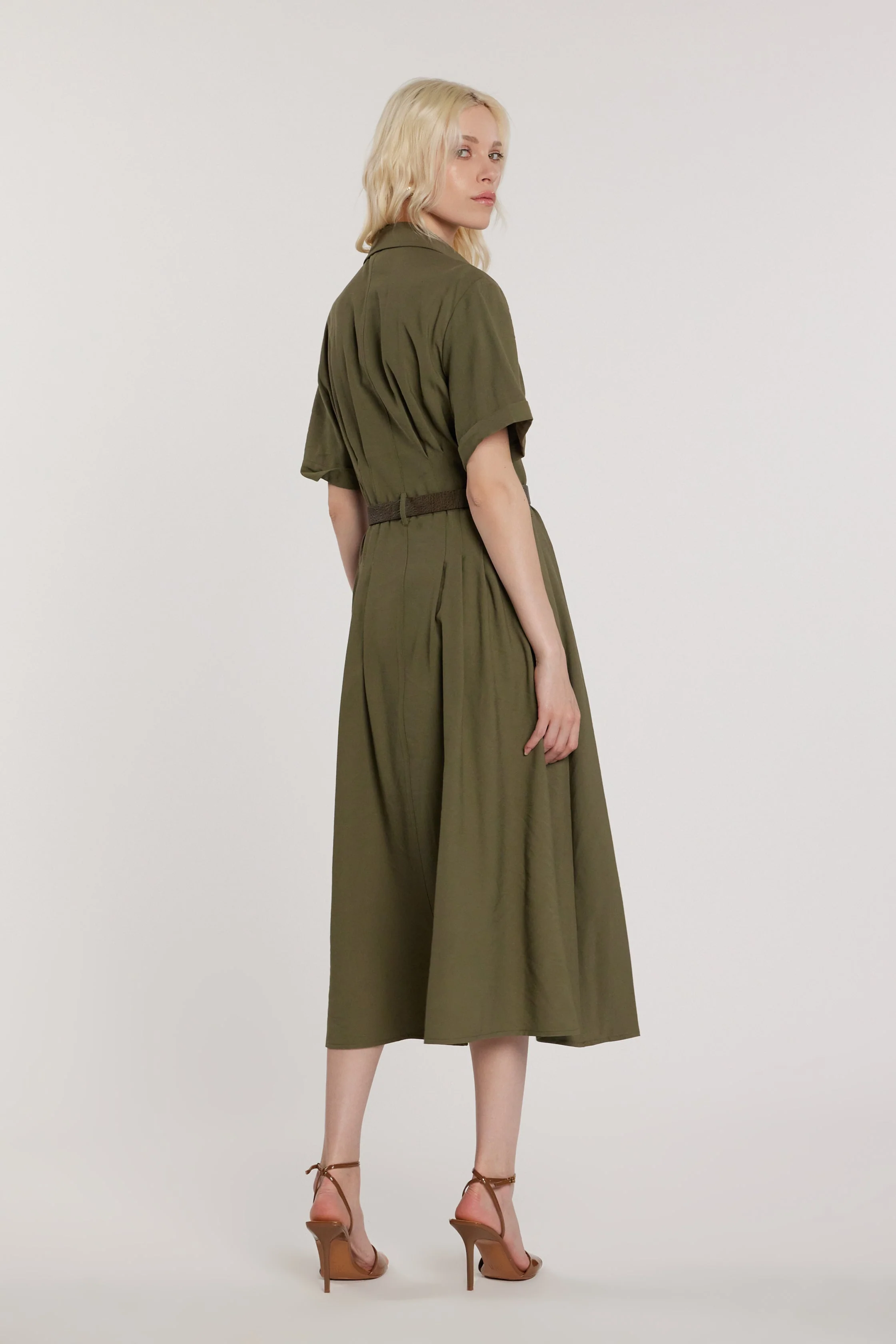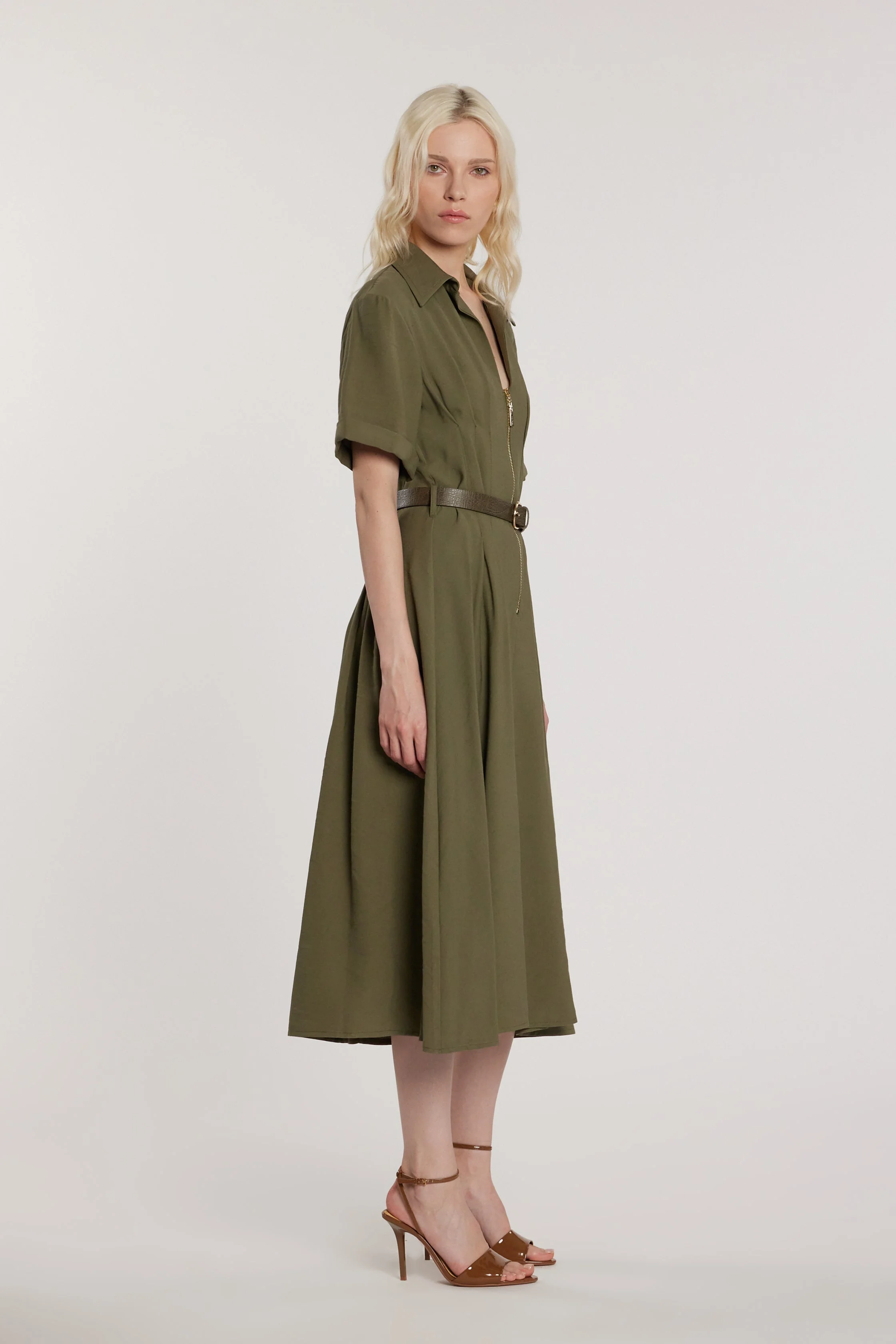 Vestido Midi CORINNES con Cinturón y Cremallera Frontal